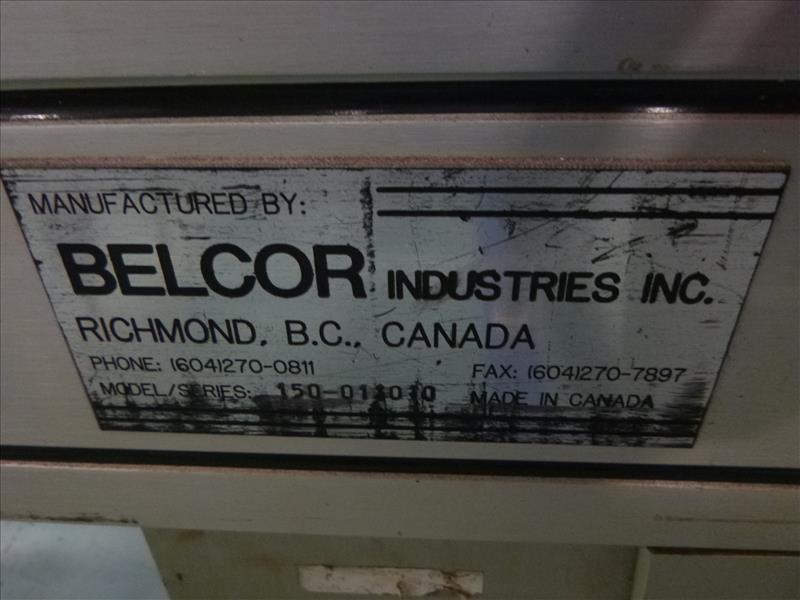 BellCore case taper, mod. 150, ser. no. 011010 w/ roller infeed conveyor & roller outfeed conveyor c/w DataMax-O'Neil label printer, mod. I-Class Mark II, ser. no. 73463660-SZ [PR]