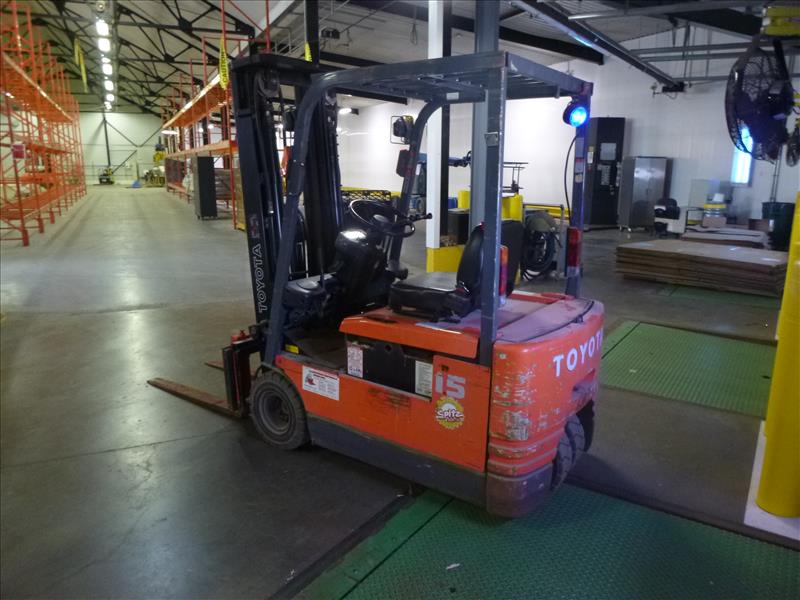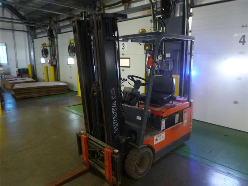 Toyota fork lift truck, mod. 5FBE15, ser. no. 25717, 2600 lb. cap., 48V, 3-stage, side-shift, 3-wheel, 36985 hrs. c/w forks [PR]