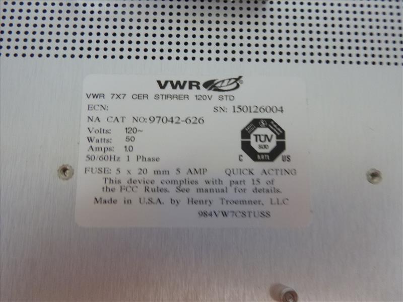 VWR hotplate/stirrer, mod. 97042-627, ser. no. 15U1Z6004, 7 in. x7 in. [PR]