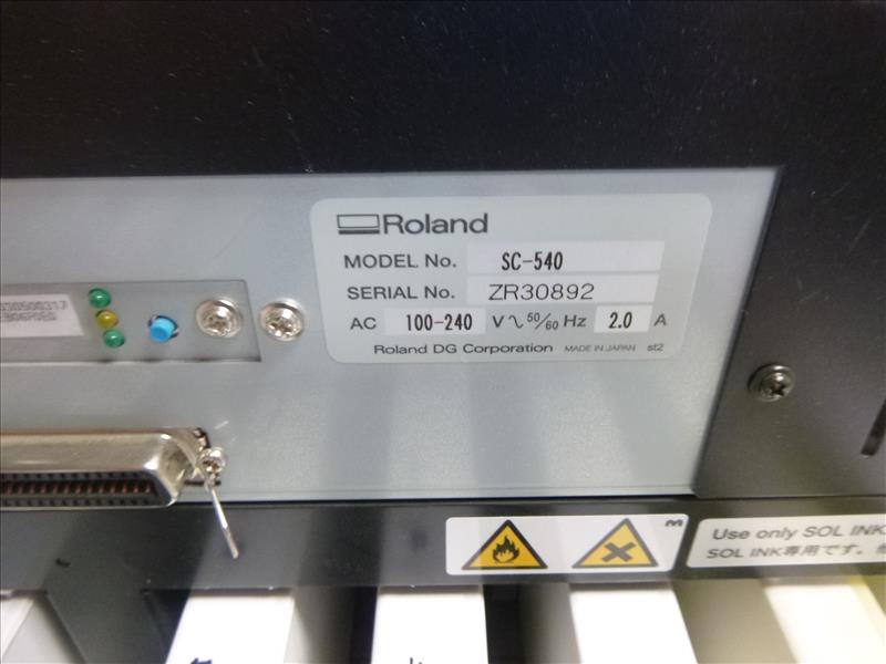 Roland SolJet large format solvent inkjet printer/cutter, mod. SC-540, ser. no. ZR30892, 1371 mm max. width, 1 mm max. thickness, 1440 dpi max resolution