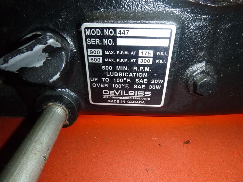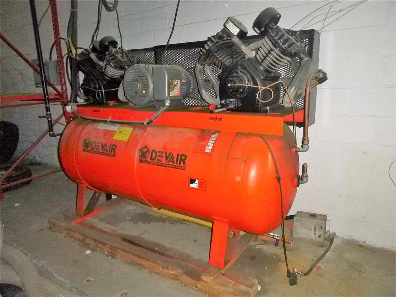 DeVair air compressor, 25 hp, dual 447 pumps, 240 gal., 300 psi max.