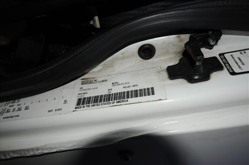 INTERNATIONAL (2012) WORKSTAR 7600 6X4 TANDEM AXLE PLOW TRUCK WITH 13L MAXXFORCE 13 TURBO DIESEL ENGINE, EATON FULLER 8 SPEED MANUAL TRANSMISSION, 20,000LBS FRONT AXLE, 20,000 LBS REARS, VIKING-CIVES PROLINE II PL1415LW-II LIVE BOTTOM BOX, (2) 155 GAL POLY LIQUID TANKS, STANDARD VIKING PLOW AND SIDE WING MOUNTS WITH HARNESS AND REXROTH DIGITAL CONTROLS, UNIT # 1031, VIN 1HTGSSJT8DJ114120 (COOKSTOWN P.Y)
