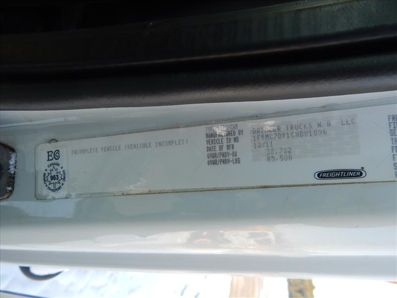 FREIGHTLINER (2012) M2 112V TRI AXLE PLOW TRUCK WITH 12.8L DETROIT DIESEL DD13 TURBO DIESEL ENGINE, EATON FULLER 8 SPEED MANUAL TRANSMISSION, 22,000LBS FRONT AXLE, 20,000 LBS THIRD AXLE, 23,000 LBS REARS, VIKING-CIVES PROLINE II PL2021LW-II LIVE BOTTOM BOX, (2) 155 GAL POLY LIQUID TANKS, STANDARD VIKING PLOW AND SIDE WING MOUNTS WITH HARNESS AND REXROTH DIGITAL CONTROLS, UNIT # 1061, VIN 1FVMC7DV1CHBU1096 (COOKSTOWN P.Y)