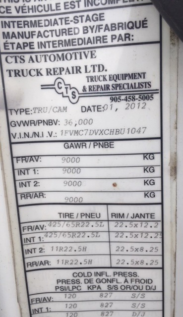 FREIGHTLINER (2012) M2 112V TRI AXLE PLOW TRUCK WITH 12.8L DETROIT DIESEL DD13 TURBO DIESEL ENGINE, EATON FULLER 8 SPEED MANUAL TRANSMISSION, 22,000LBS FRONT AXLE, 20,000 LBS THIRD AXLE, 23,000 LBS REARS, VIKING-CIVES PROLINE II PL2021LW-II LIVE BOTTOM BOX, (2) 155 GAL POLY LIQUID TANKS, STANDARD VIKING PLOW AND SIDE WING MOUNTS WITH HARNESS AND REXROTH DIGITAL CONTROLS, UNIT # 1036, VIN 1FVMC7DVXCHBU1047 (GUELPH P.Y)