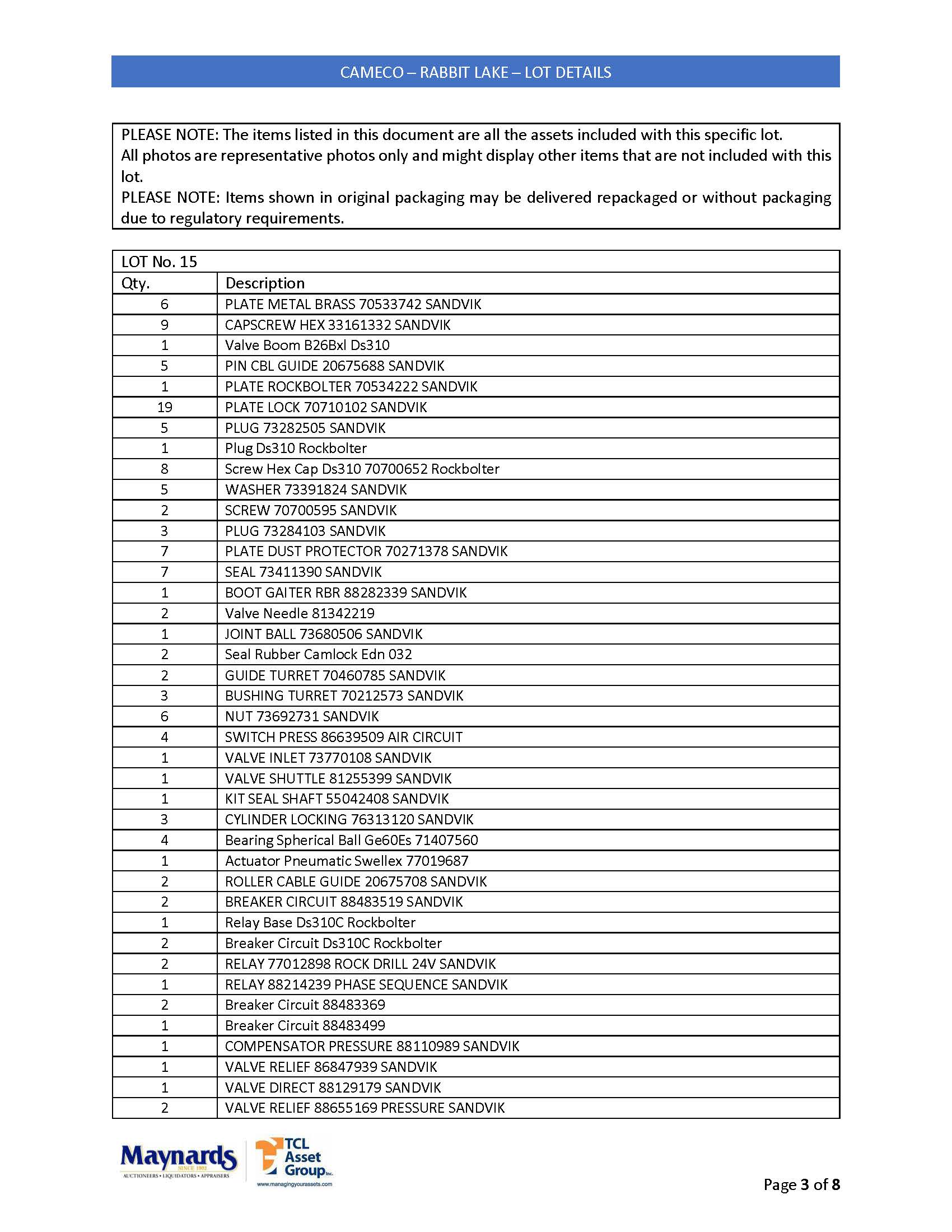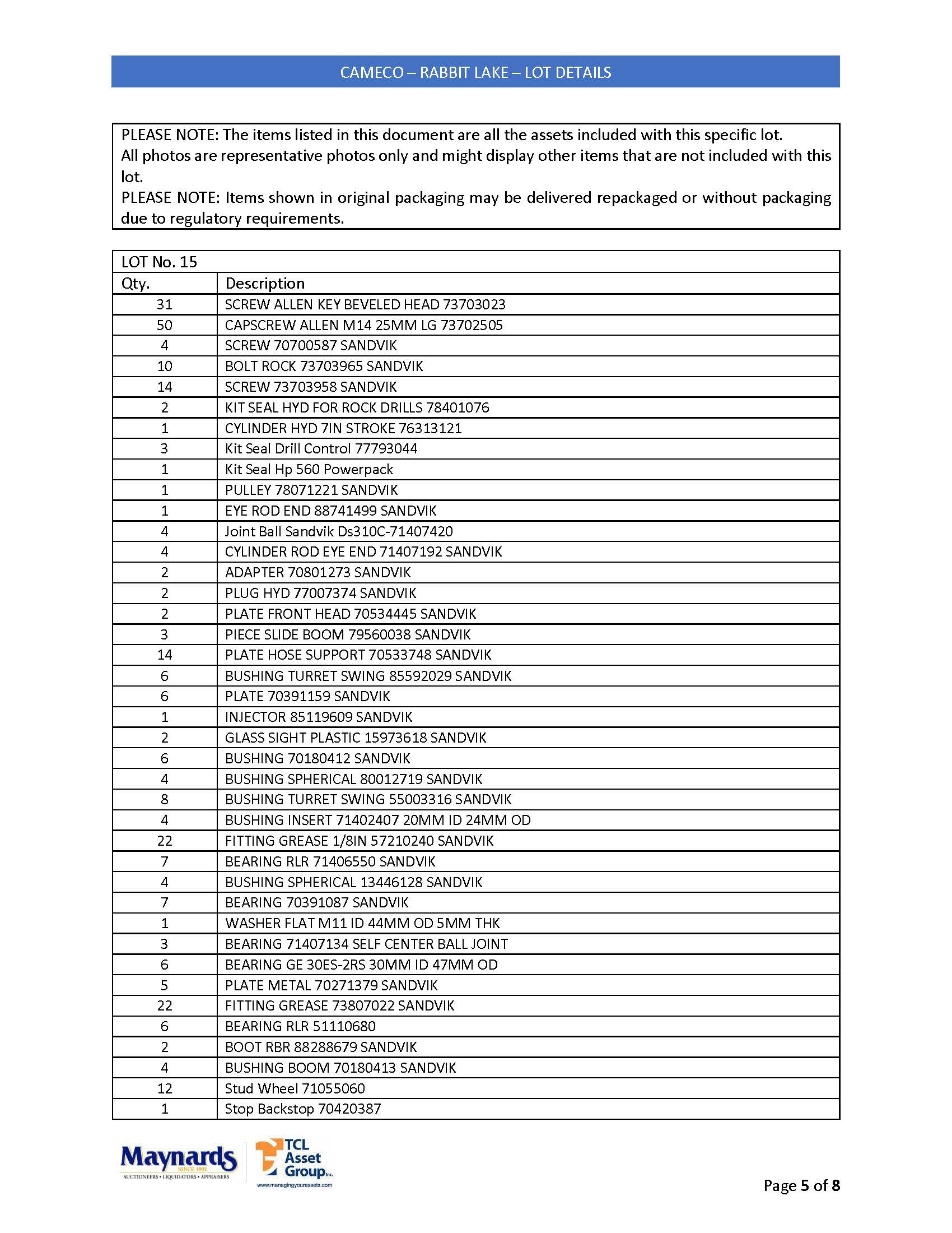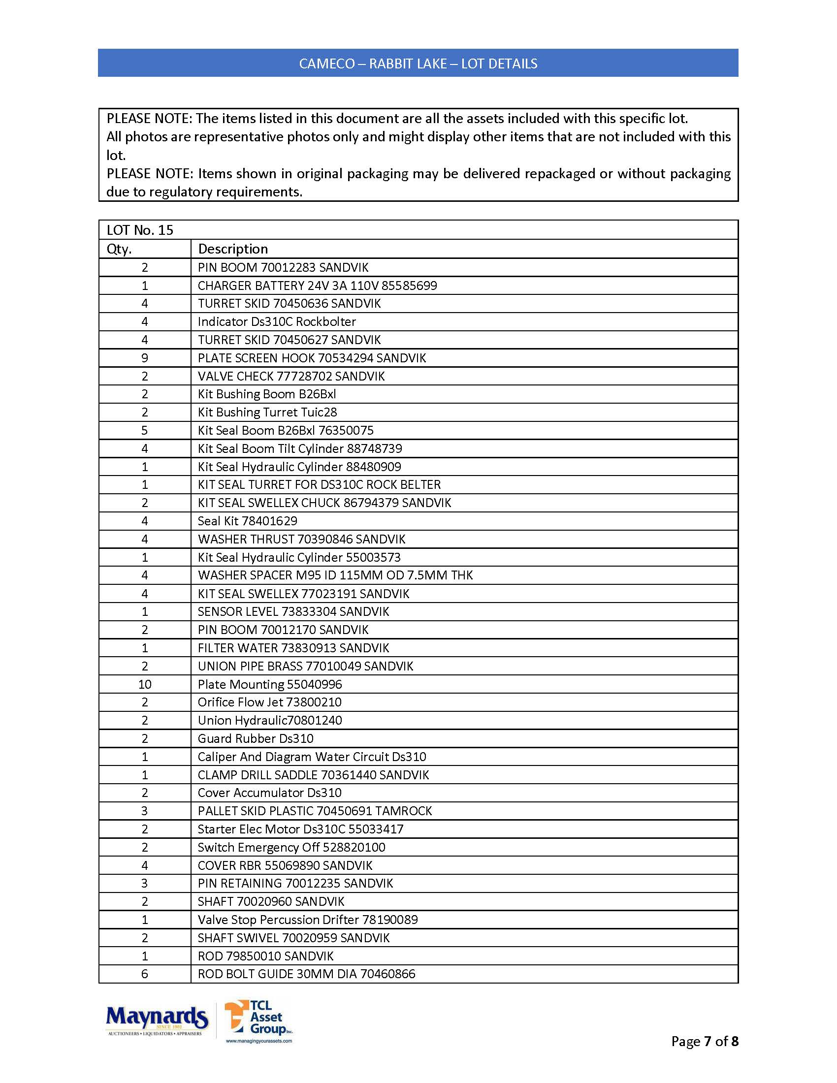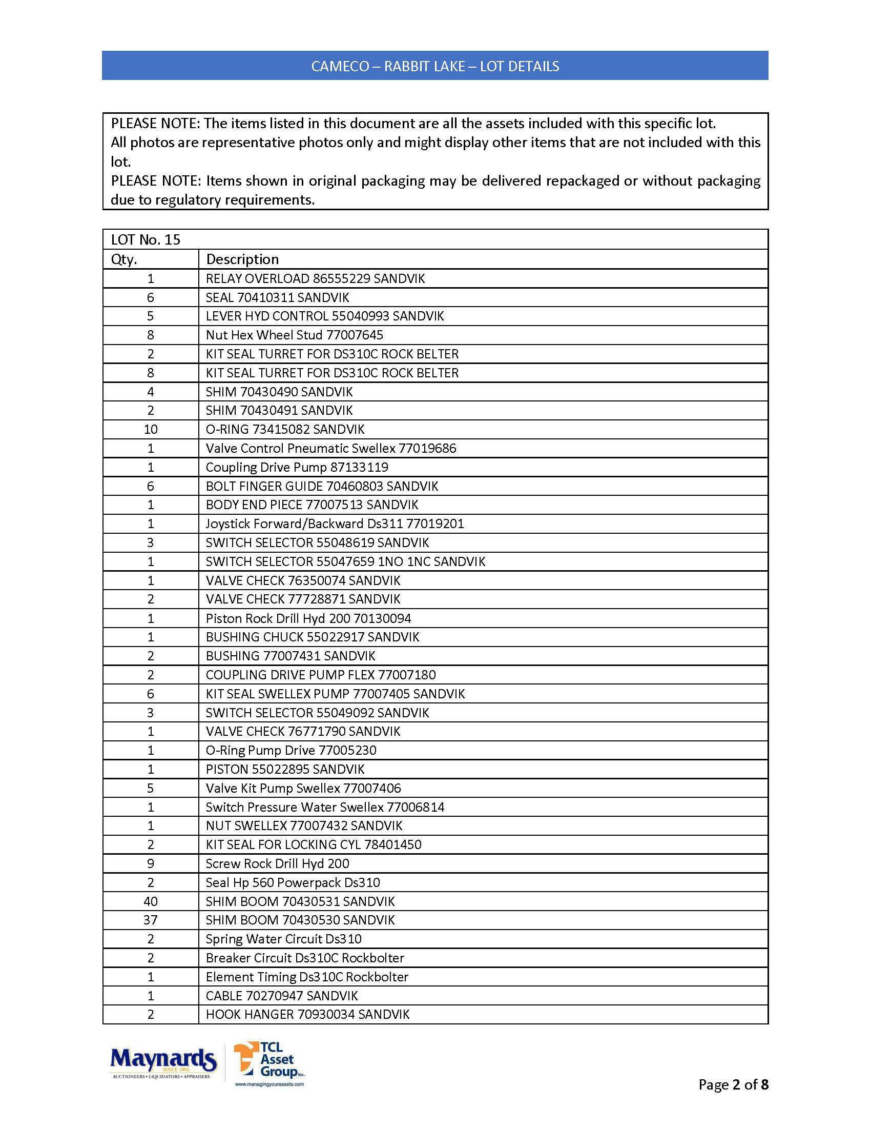 misc. mobile mining equipment spare parts, etc. (please see attached for inclusive listing)