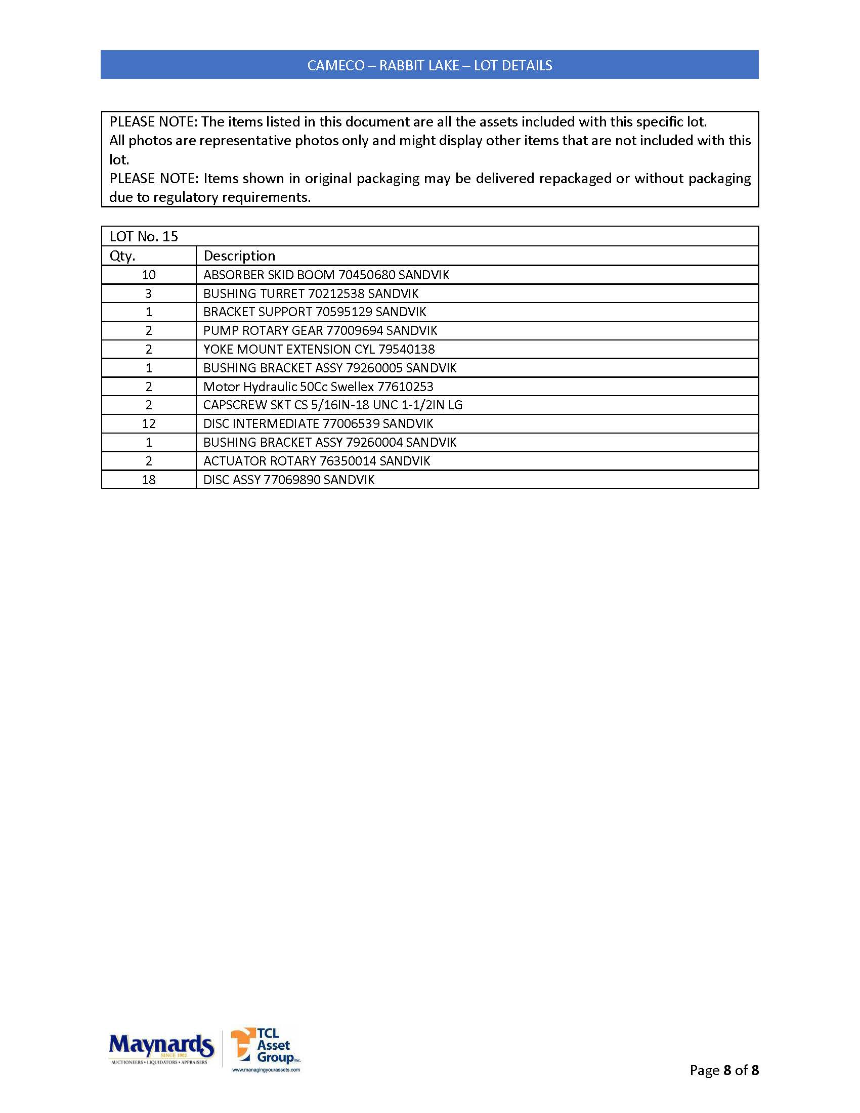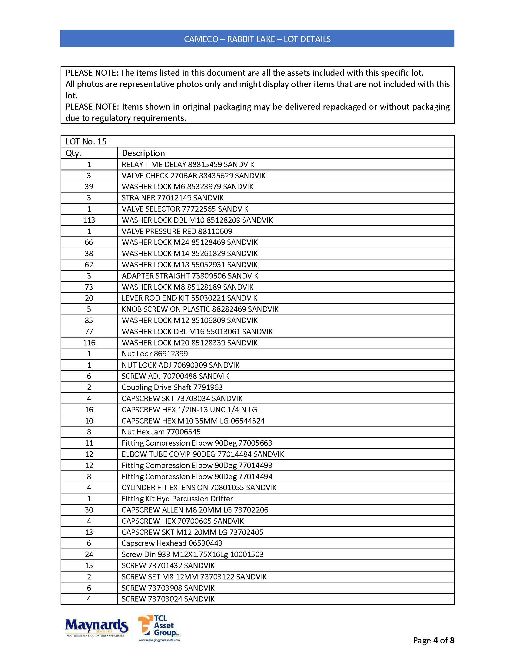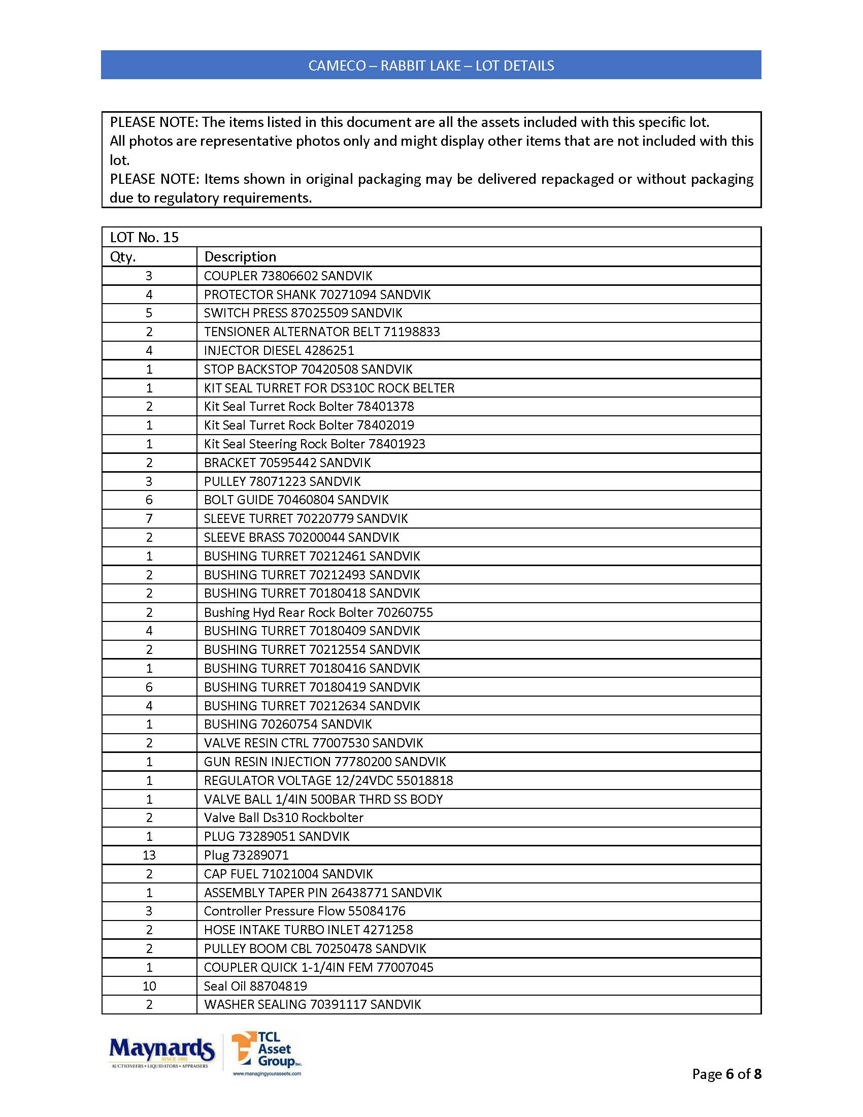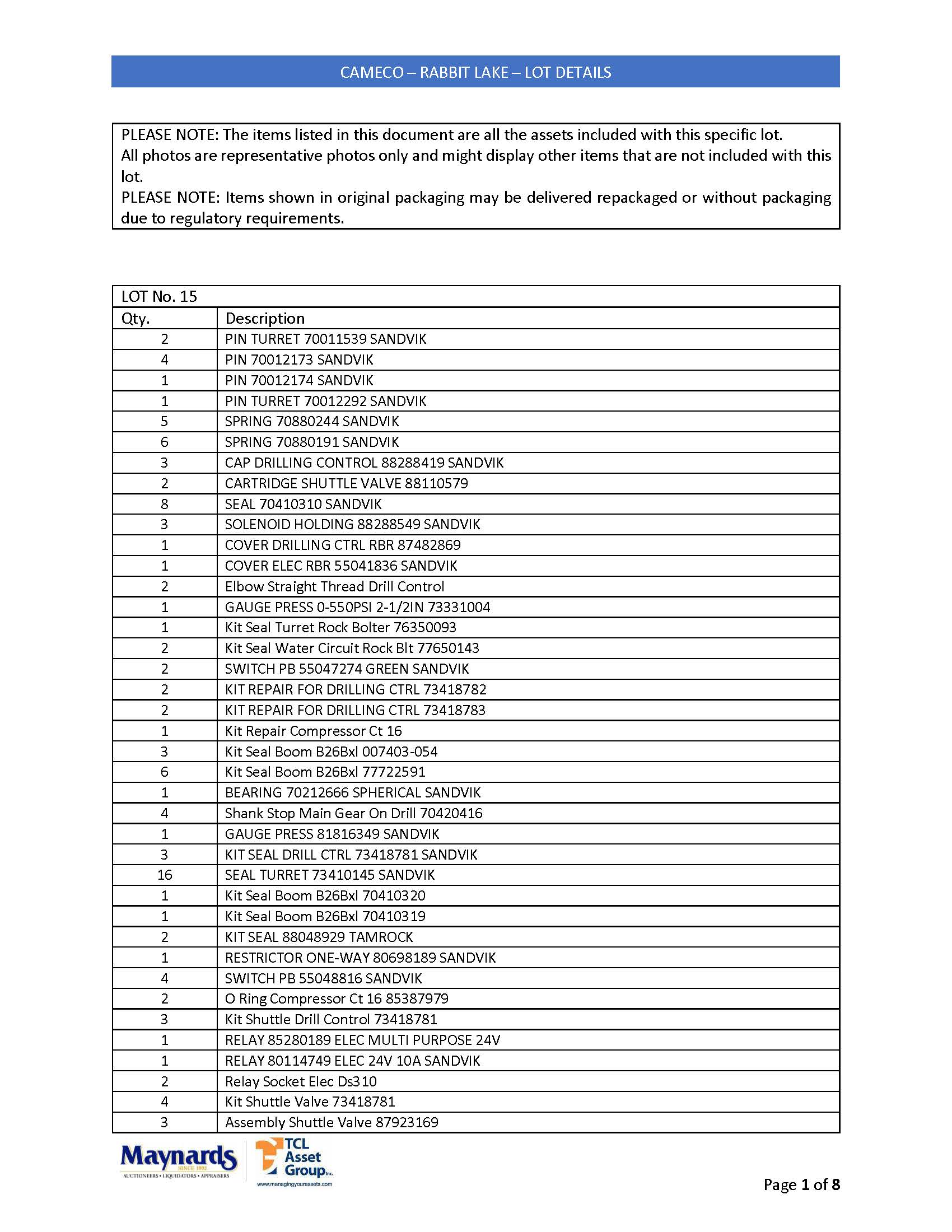 misc. mobile mining equipment spare parts, etc. (please see attached for inclusive listing)