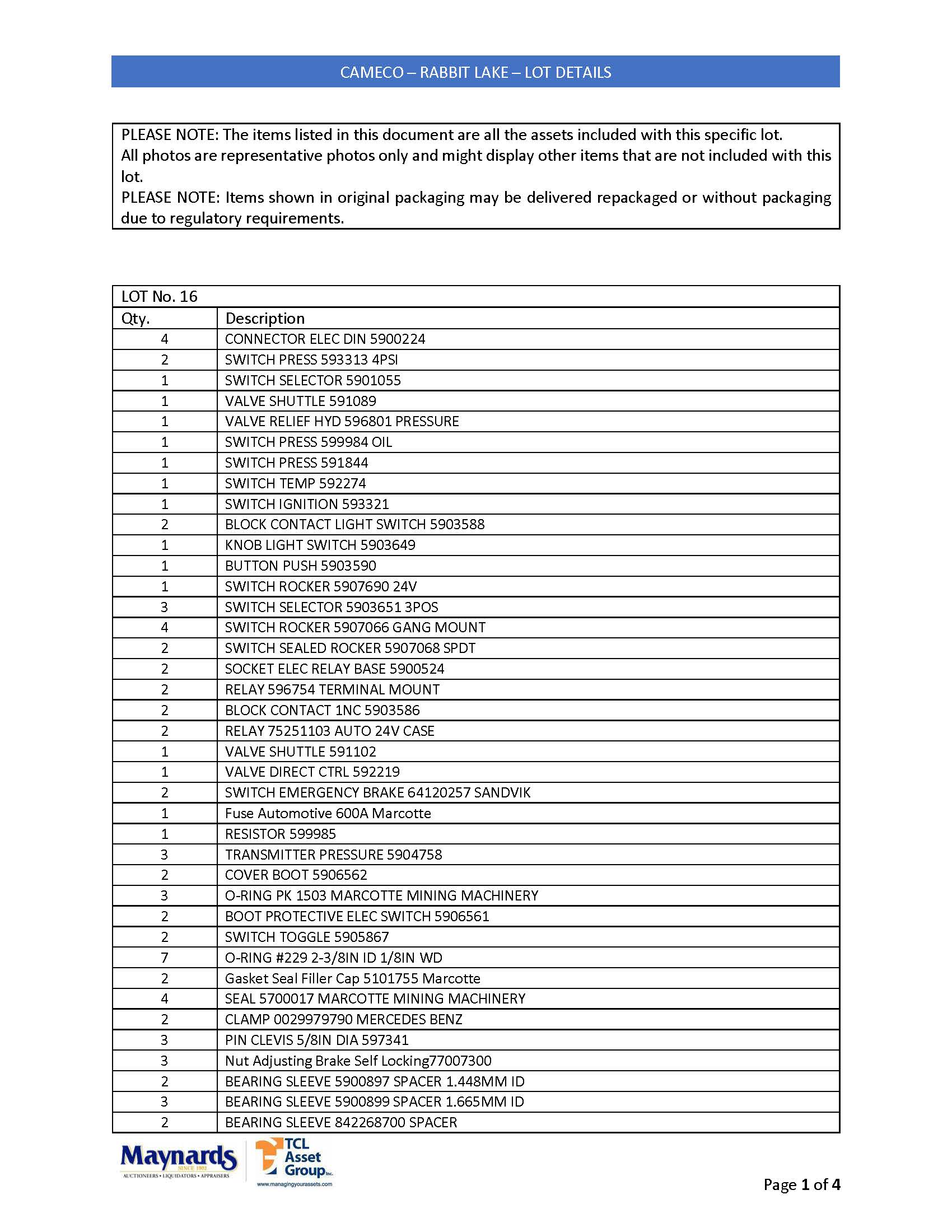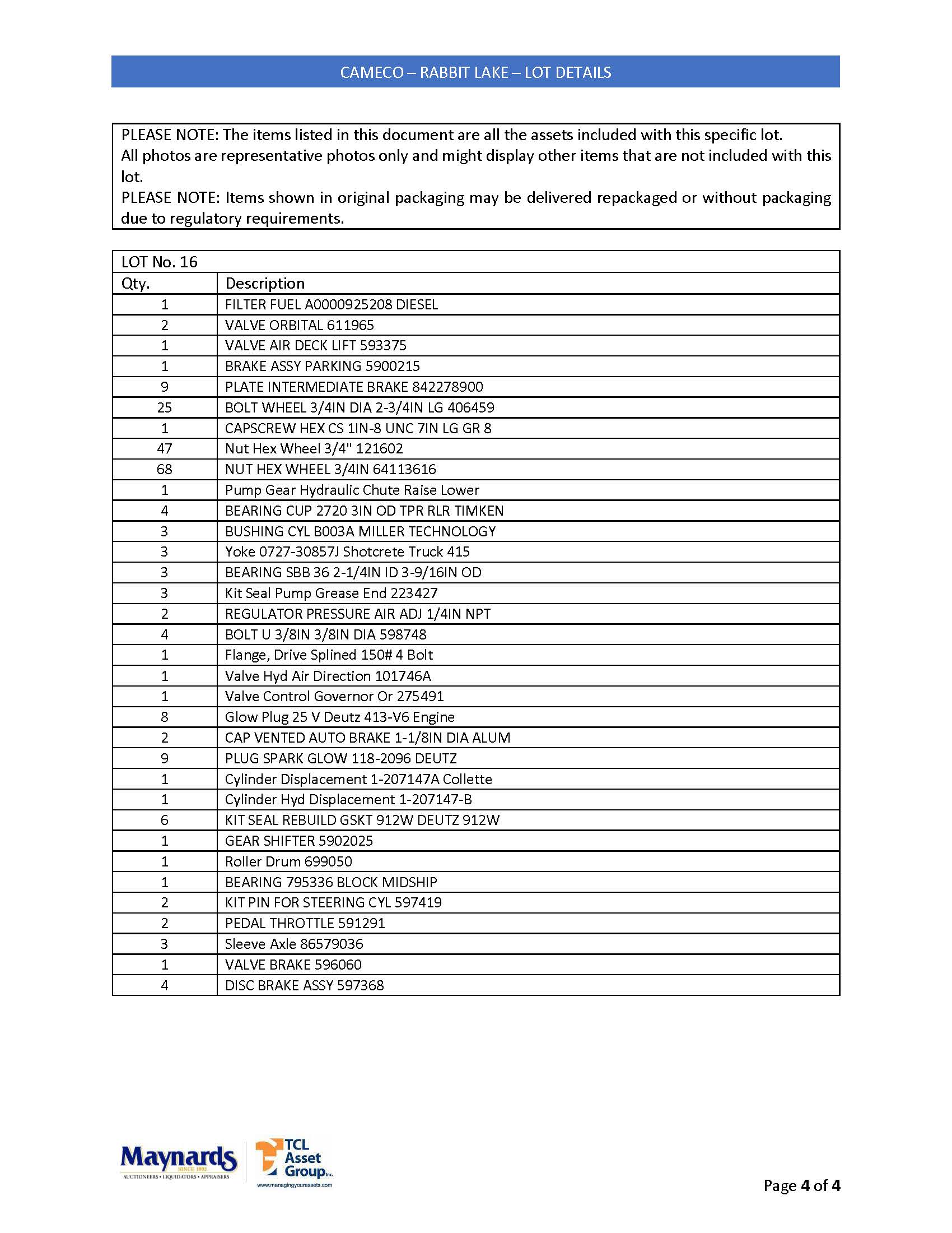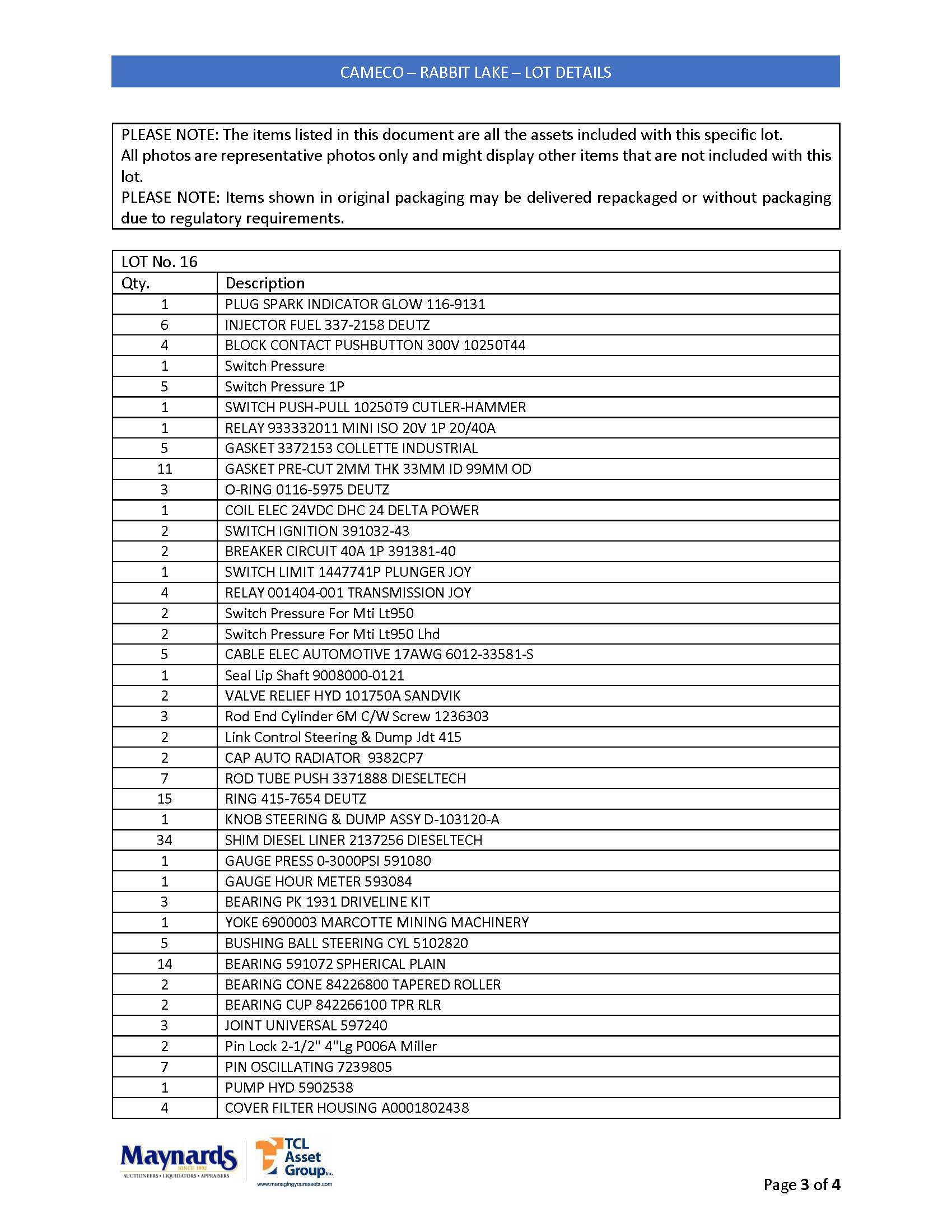 misc. spare parts, etc. (please see attached for inclusive listing)