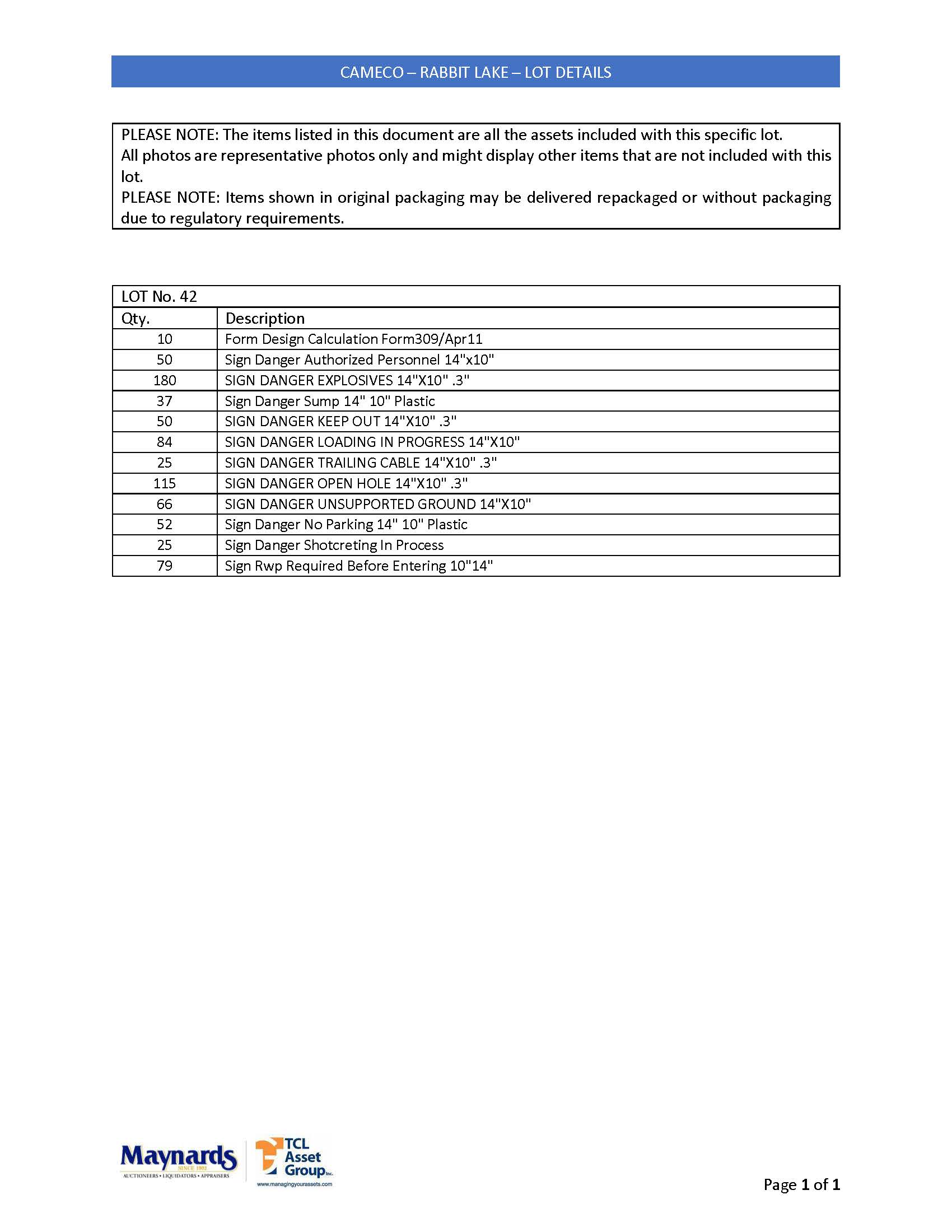 misc. \"Danger\" signs, etc. (please see attached for inclusive listing)