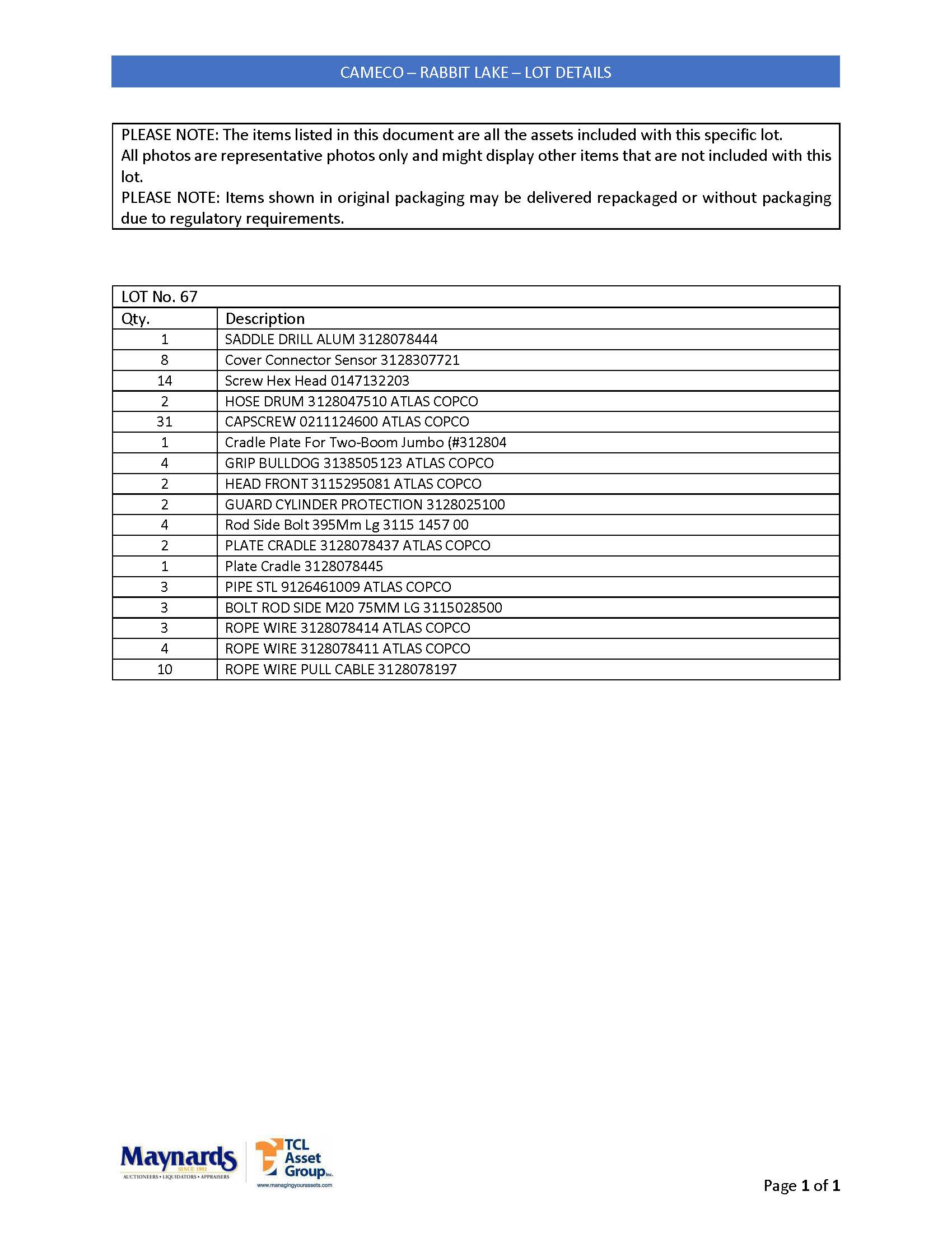 misc. material handling equipment spare parts, etc. (please see attached for inclusive listing)