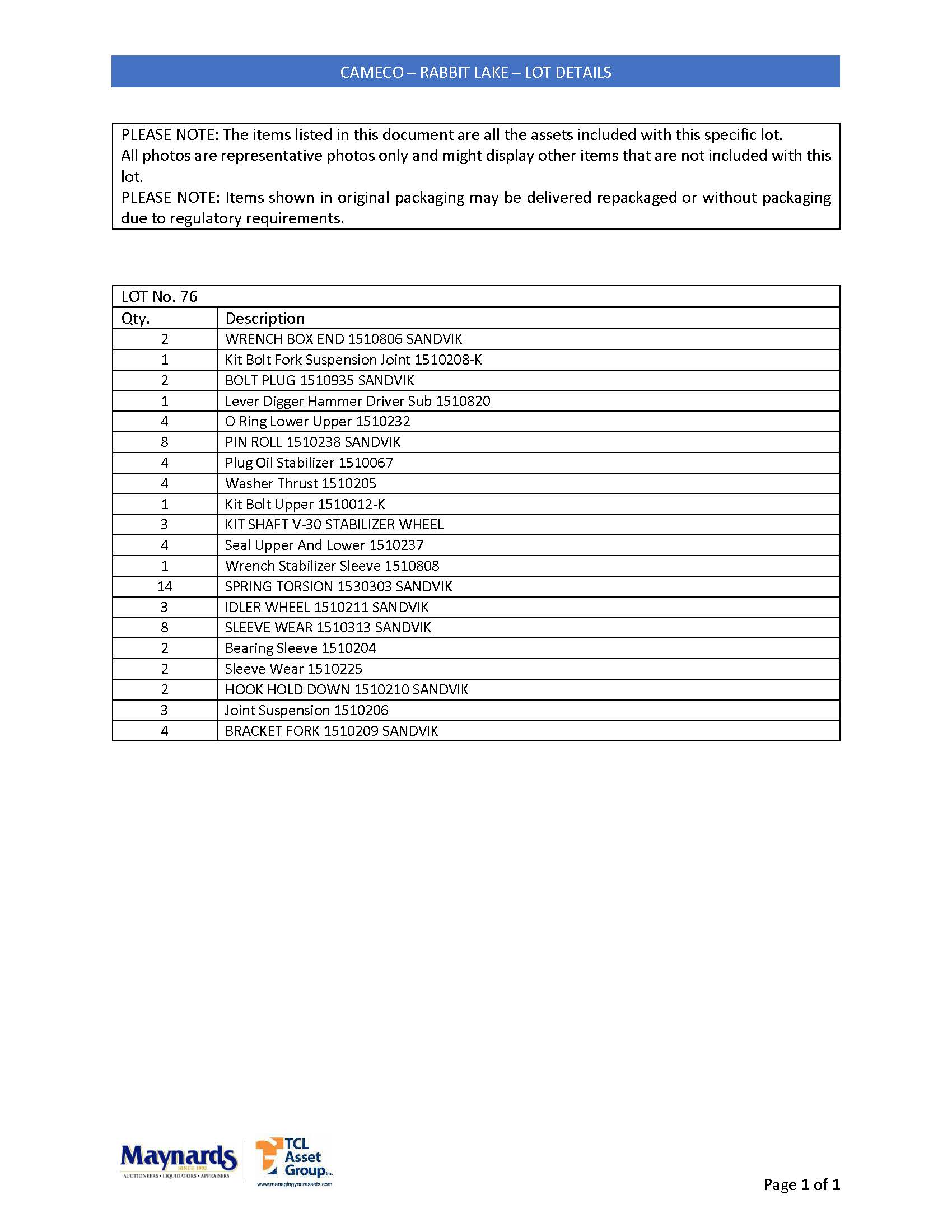 misc. mobile mining equipment spare parts, etc. (please see attached for inclusive listing)