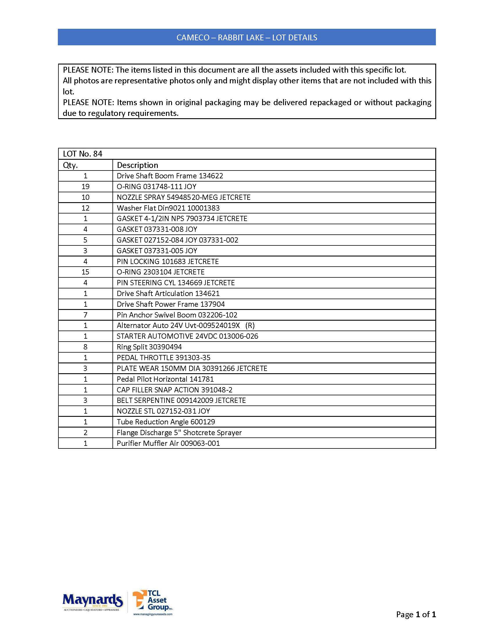 misc. ground support materials and mining mobile equipment spare parts, etc. (please see attached for inclusive listing)