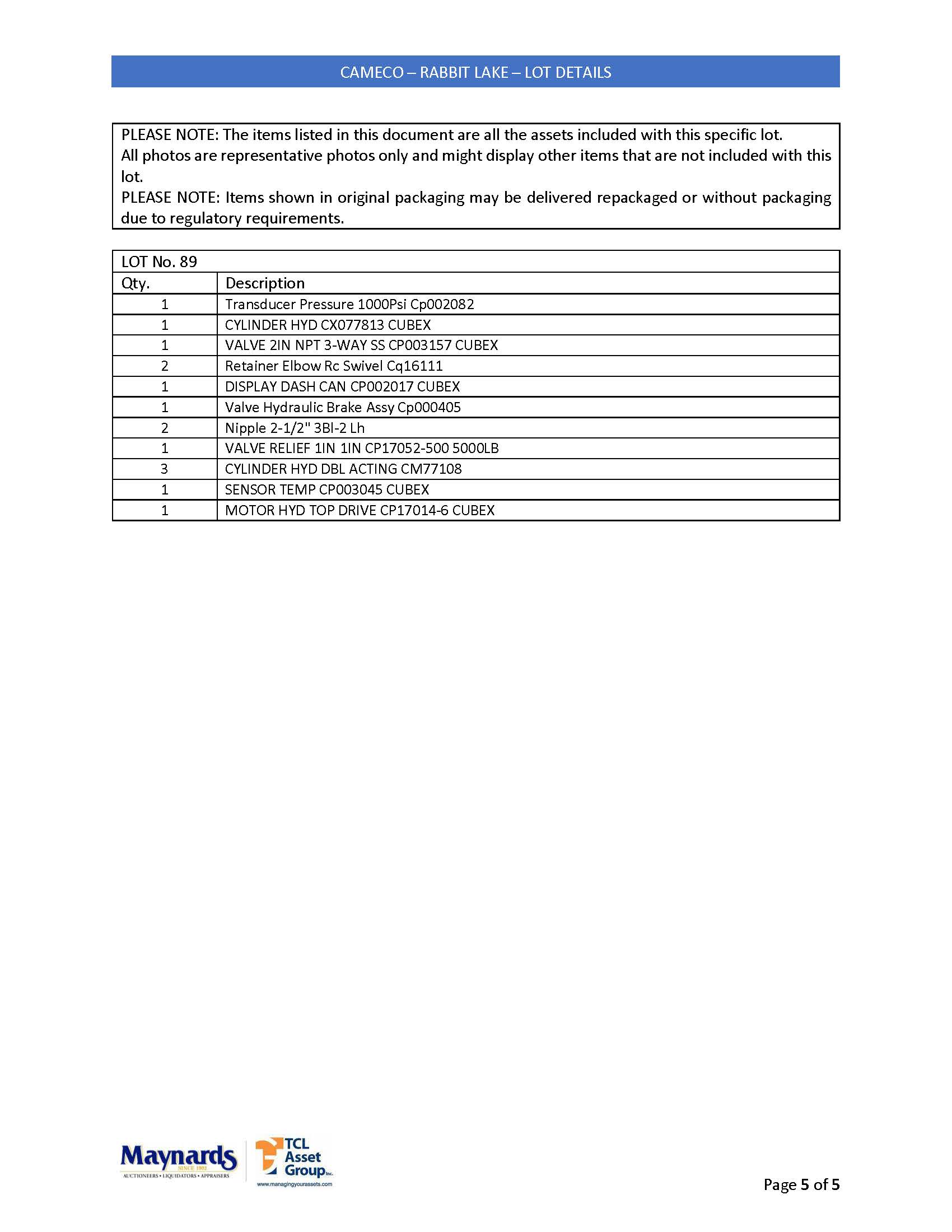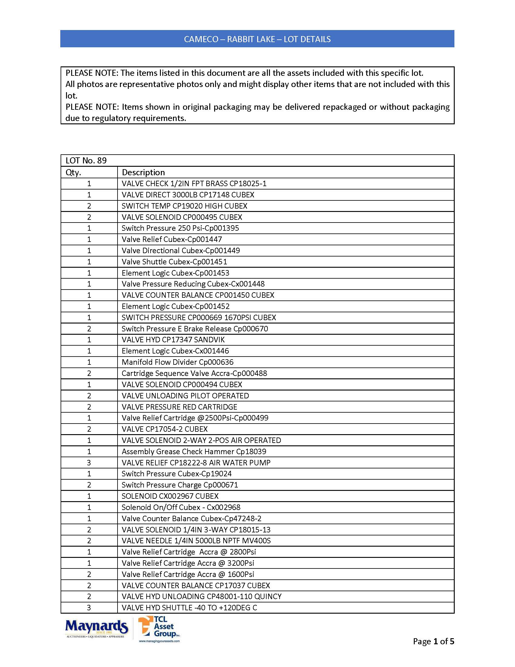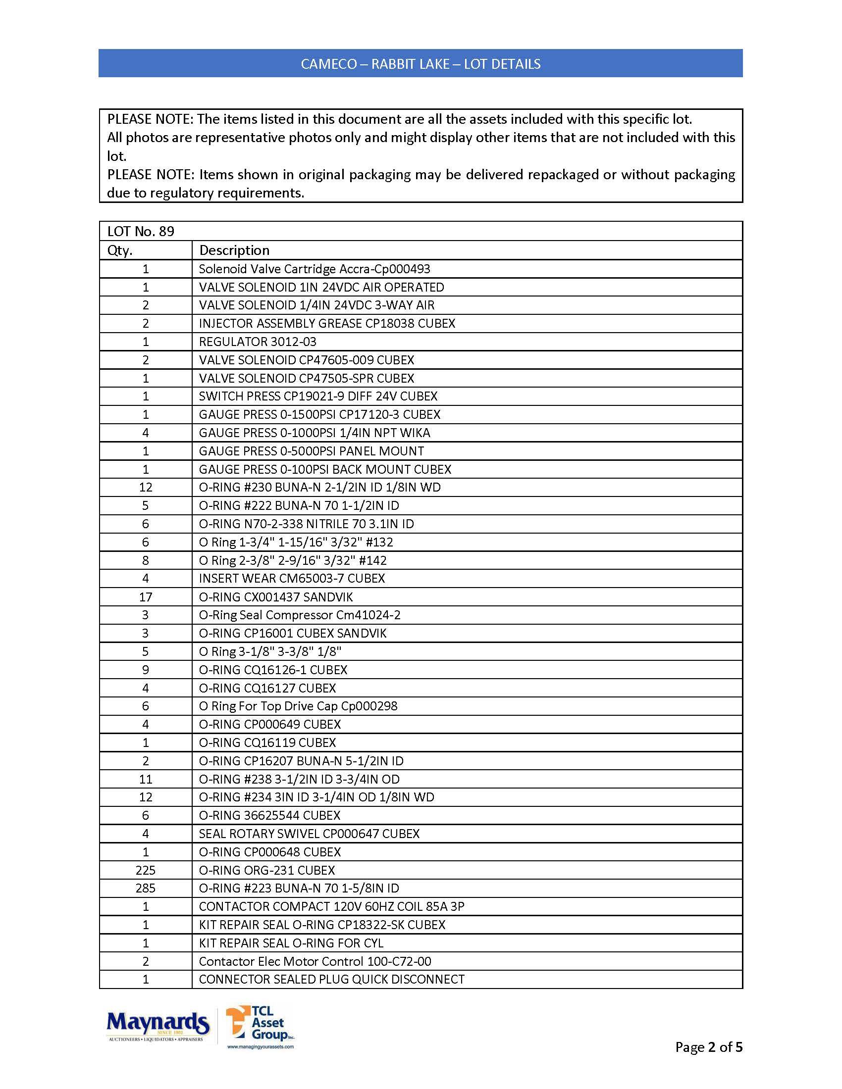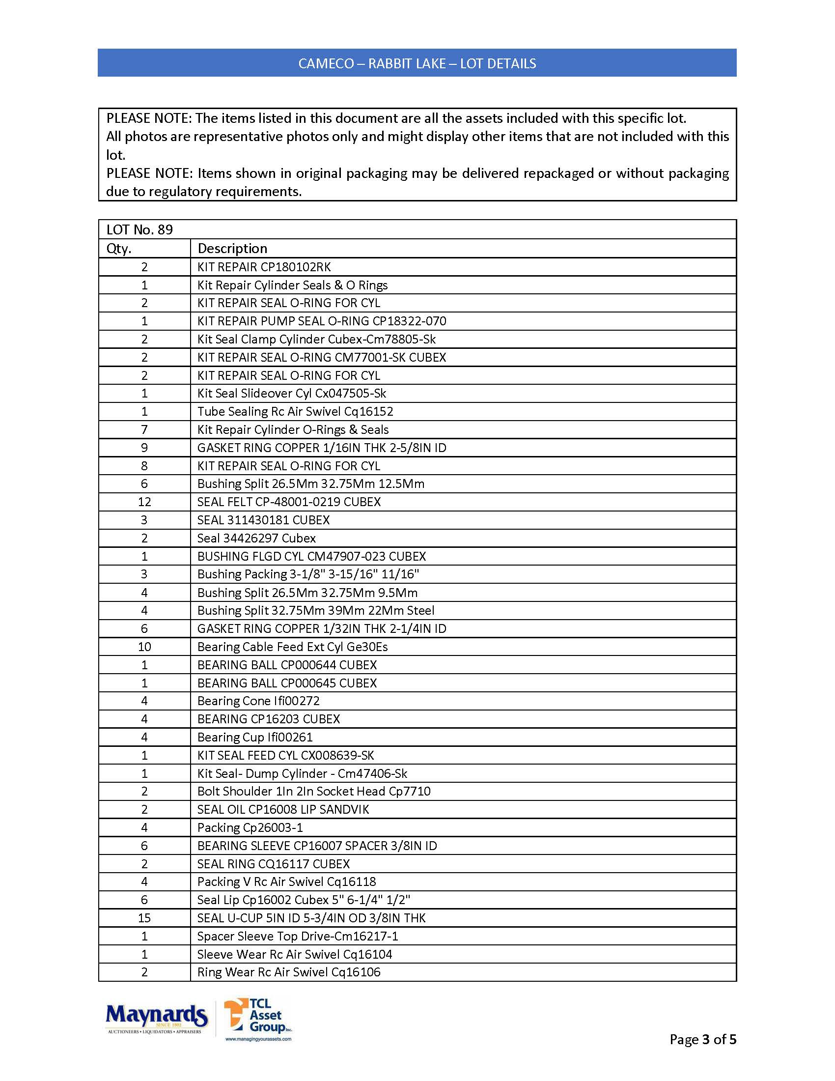 misc. mobile mining equipment spare parts, etc. (please see attached for inclusive listing)