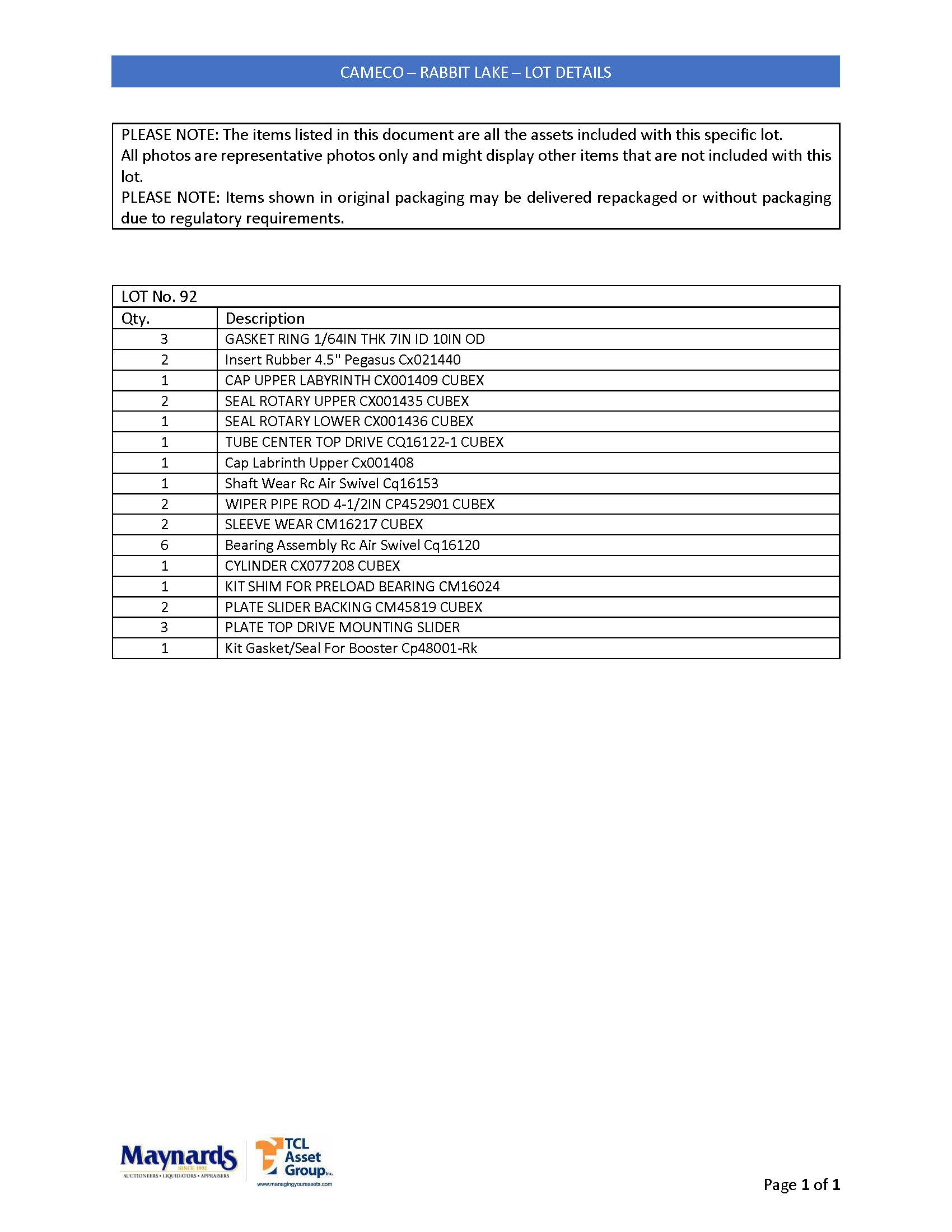 misc. mobile mining equipment spare parts, etc. (please see attached for inclusive listing)