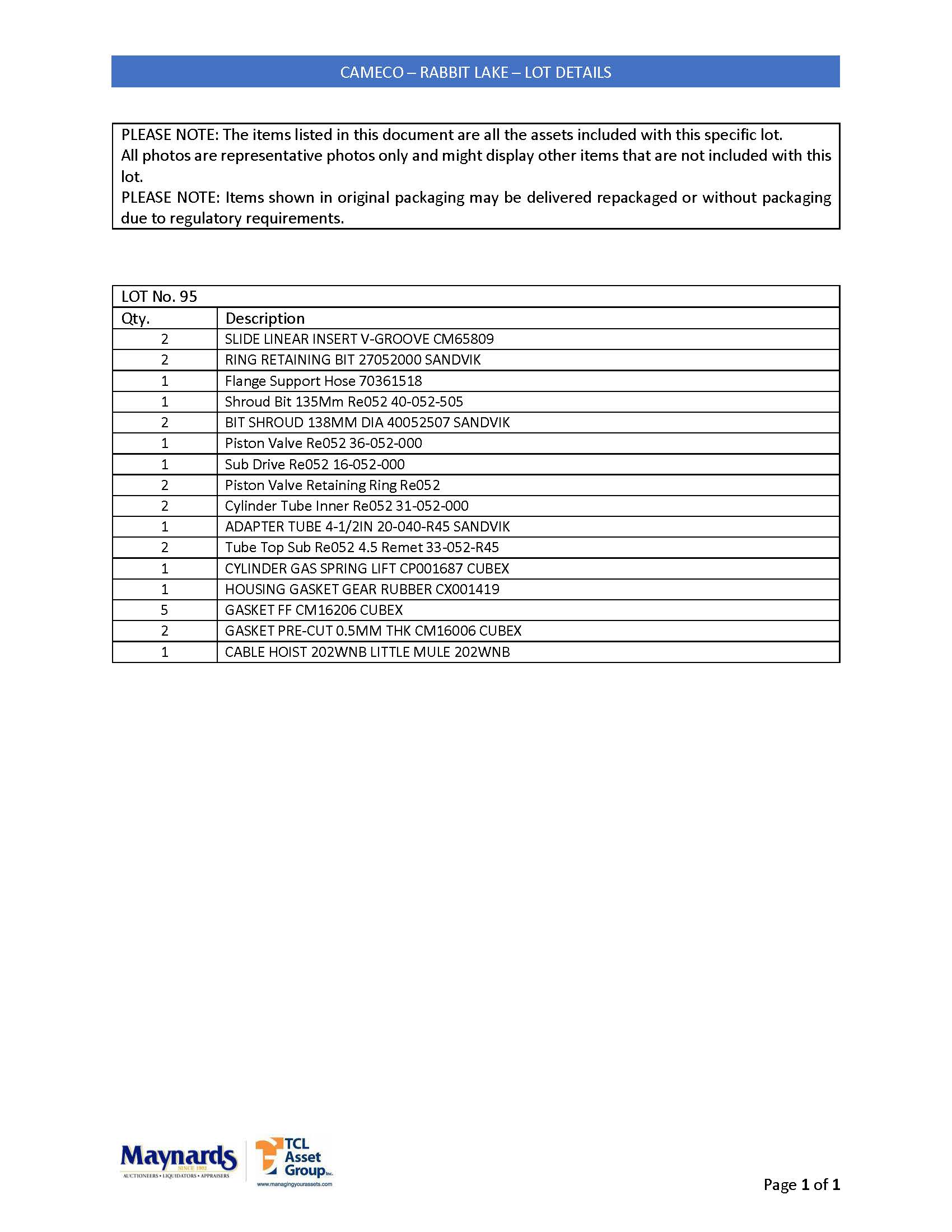 misc. mobile mining equipment spare parts, etc. (please see attached for inclusive listing)