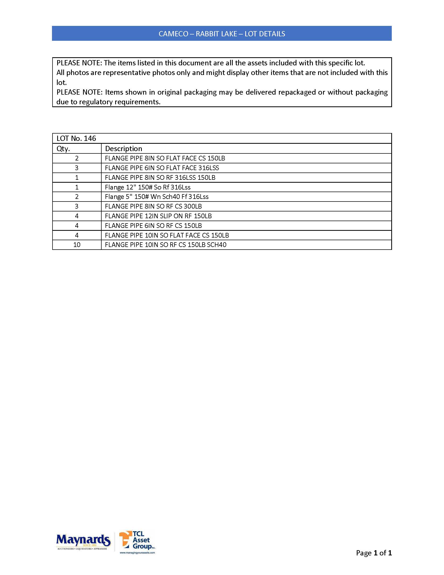 misc. pipe flanges, etc. (please see attached for inclusive listing)