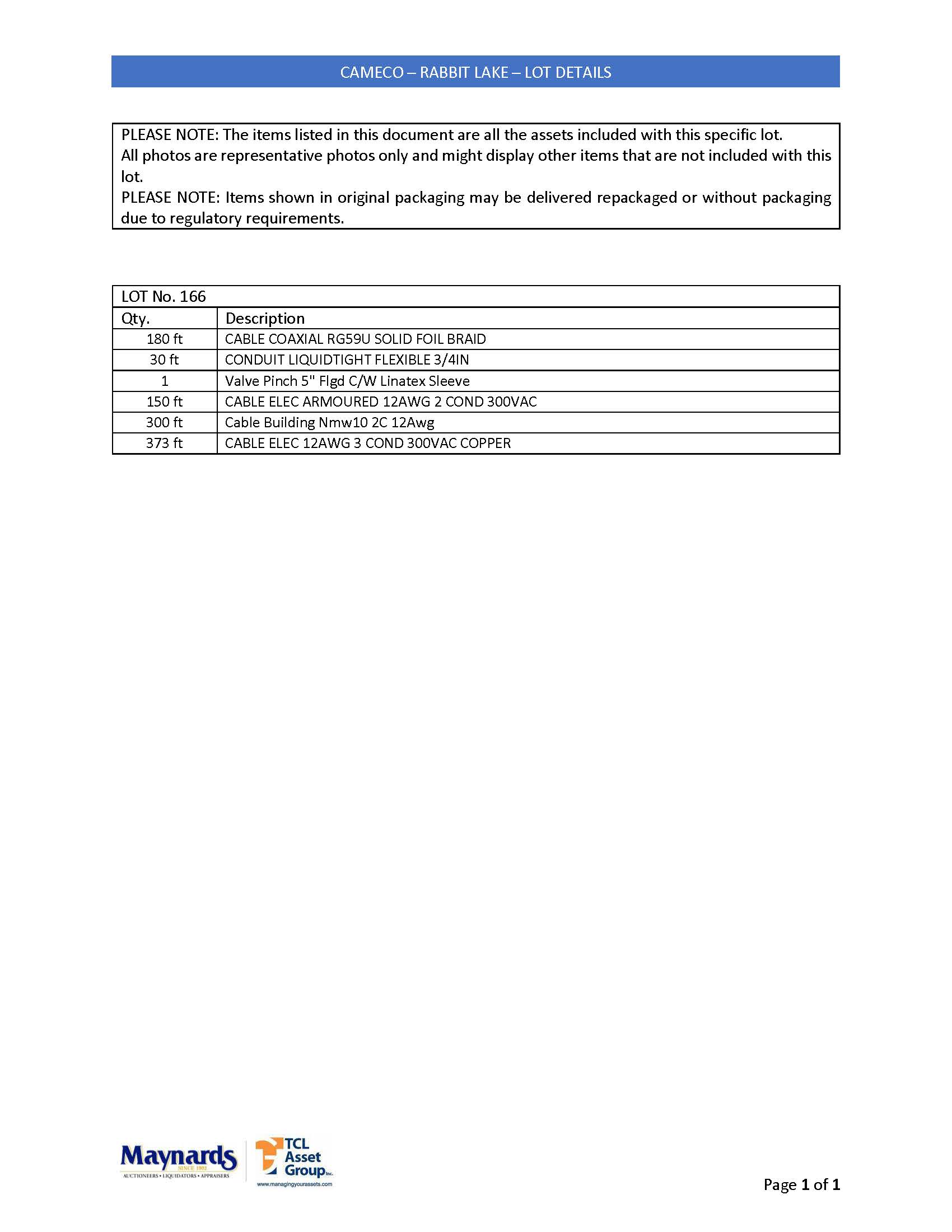 misc. electrical cable, etc. (please see attached for inclusive listing)