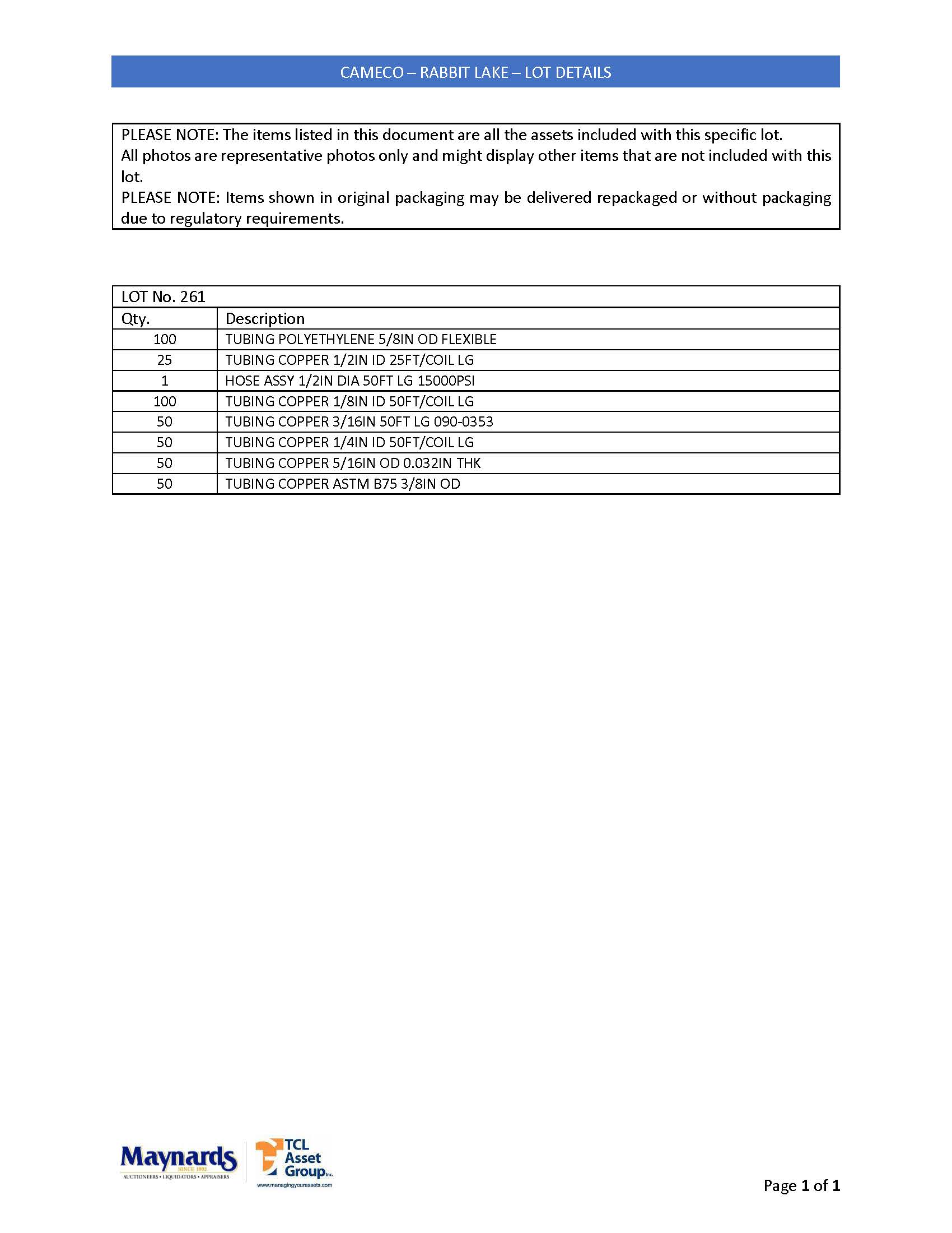 misc. copper tubing, etc. (please see attached for inclusive listing)
