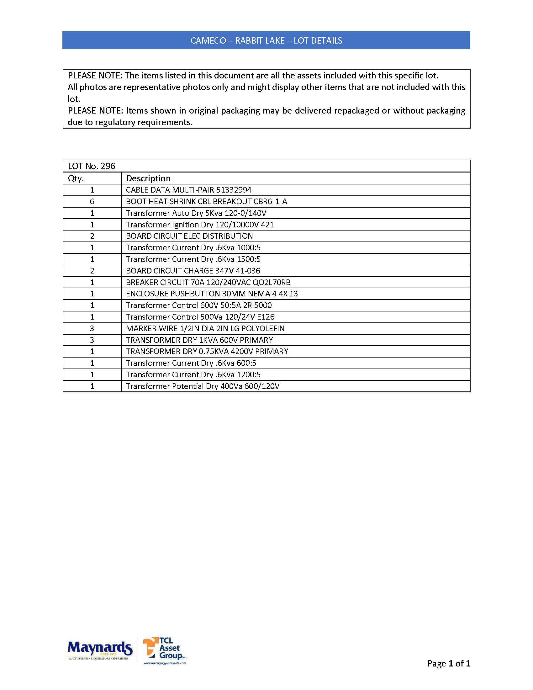 misc. electrical supplies, etc. (please see attached for inclusive listing)