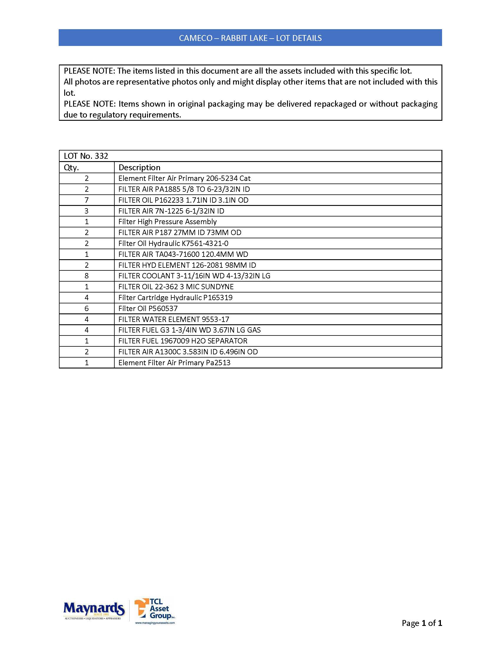 misc. filters and elements, etc. (please see attached for inclusive listing)