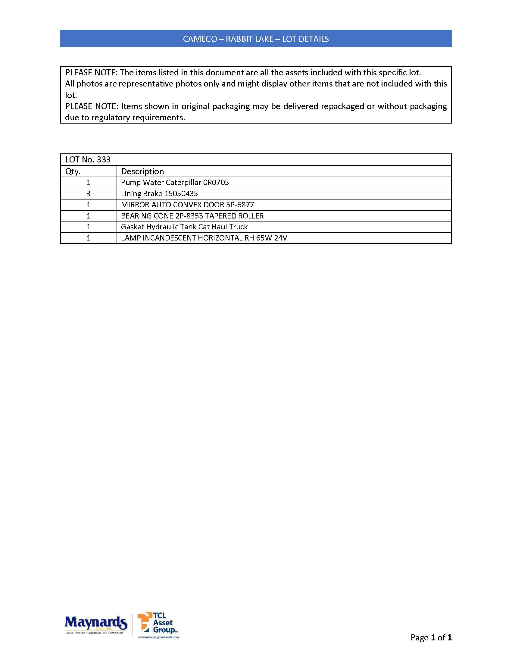 misc. mobile material handling spare parts, etc. (please see attached for inclusive listing)