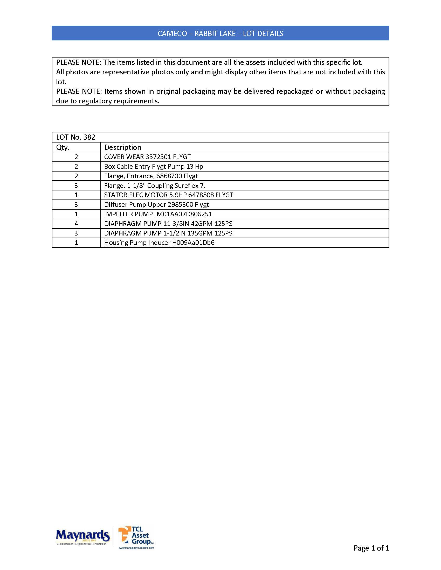 misc. pump parts, etc. (please see attached for inclusive listing)