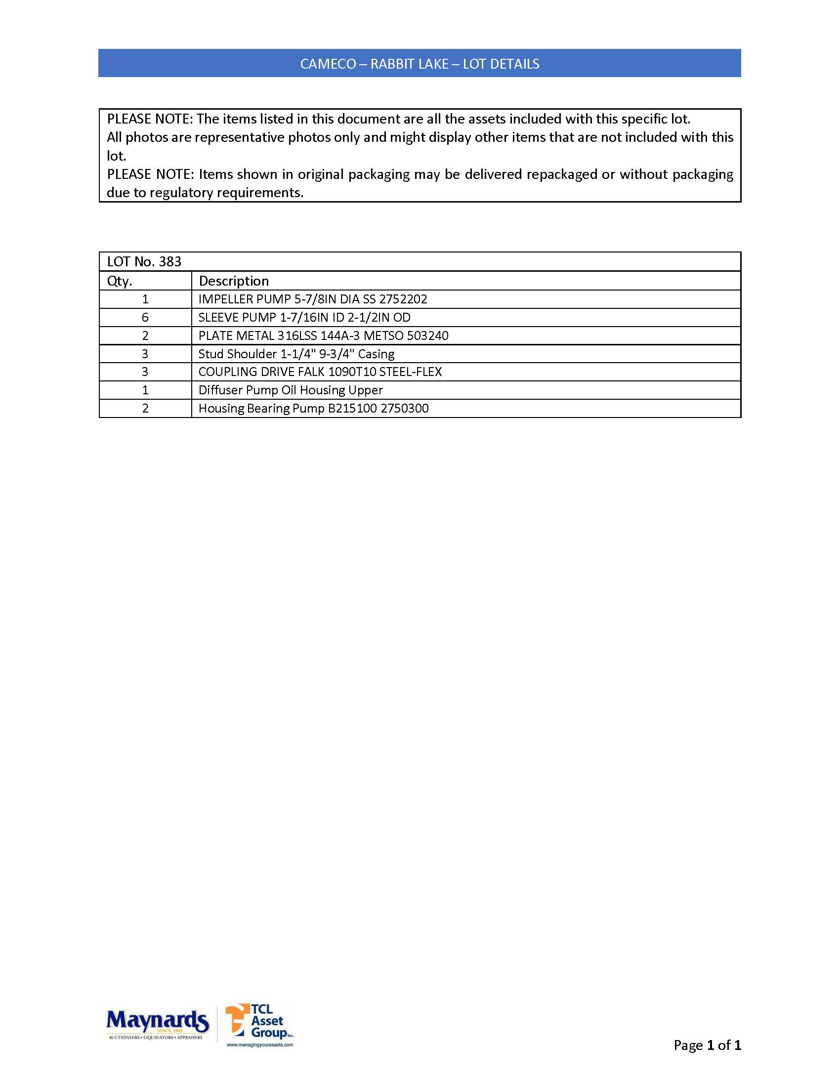misc. pump parts, etc. (please see attached for inclusive listing)