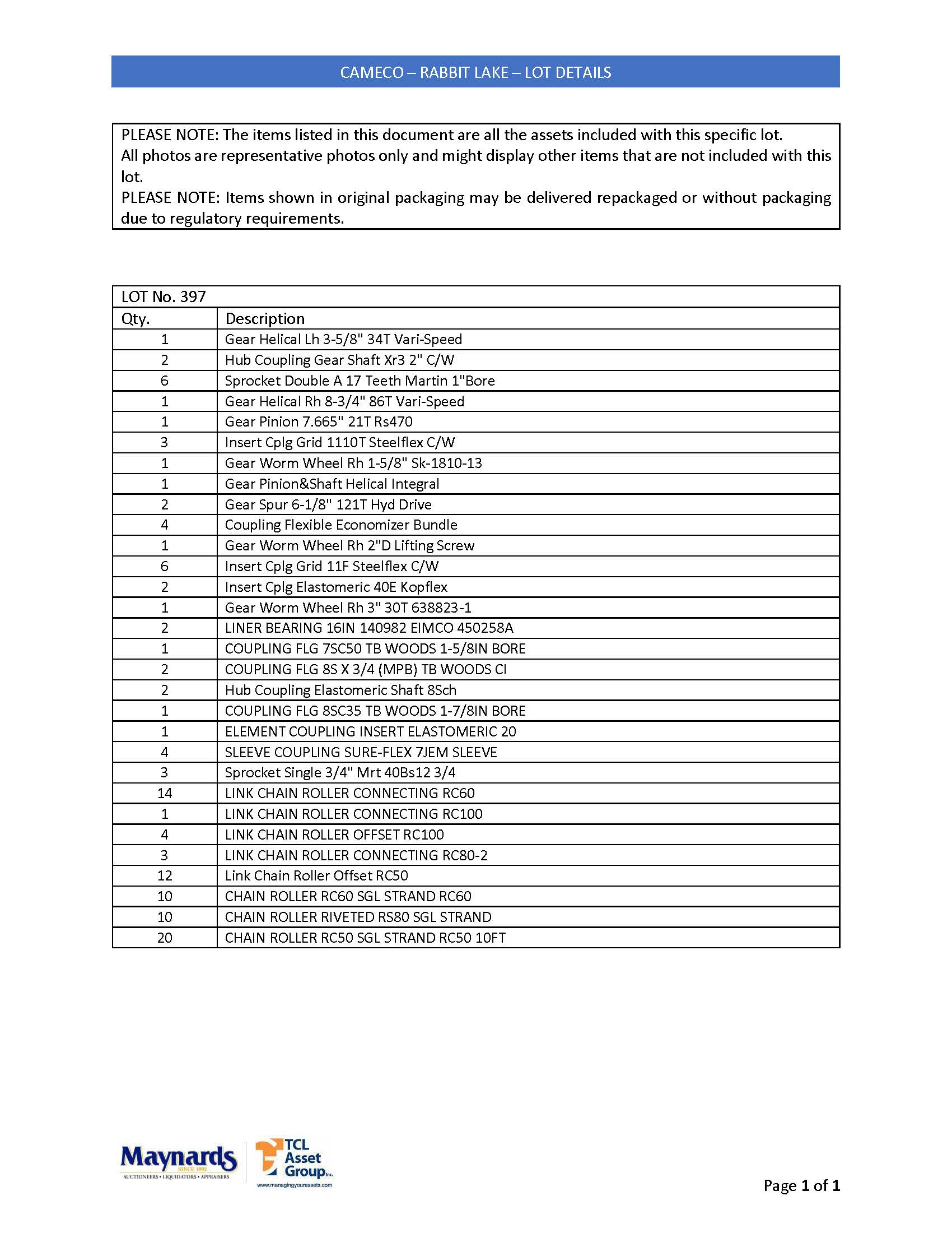 misc. sprockets and couplings, etc. (please see attached for inclusive listing)