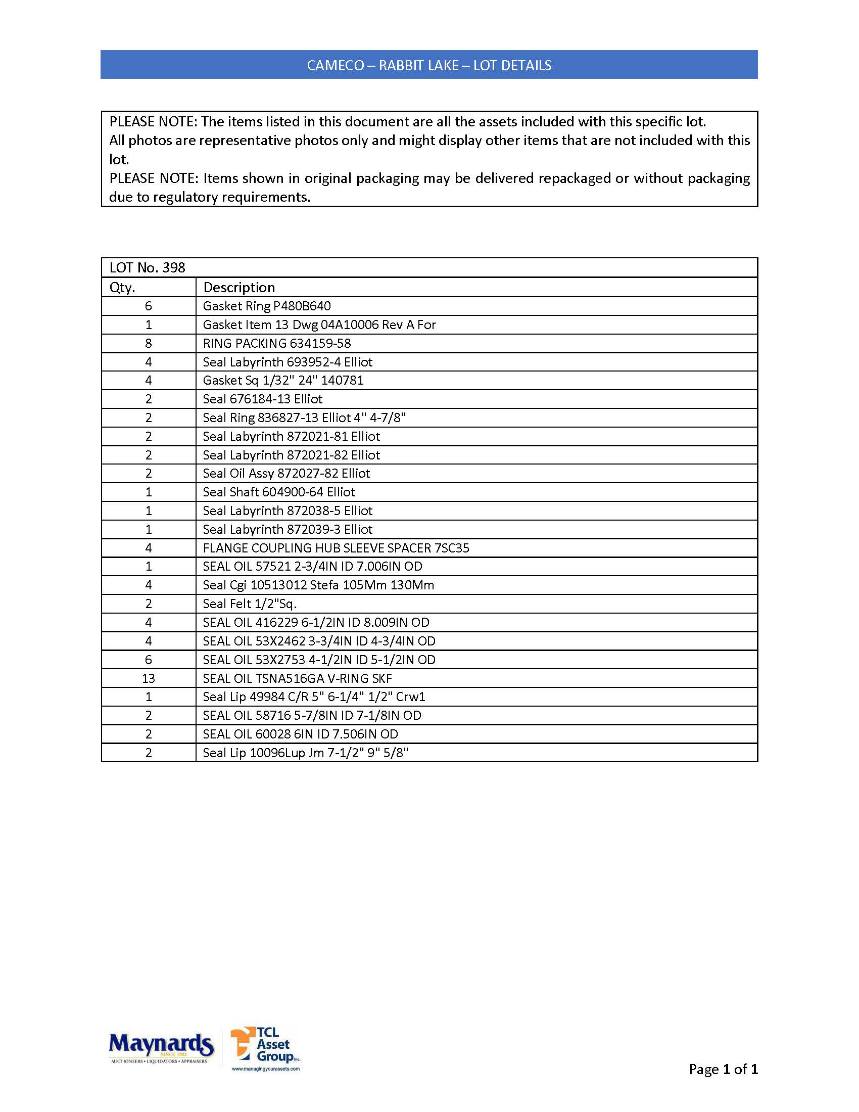 misc. seals and gaskets, etc. (please see attached for inclusive listing)