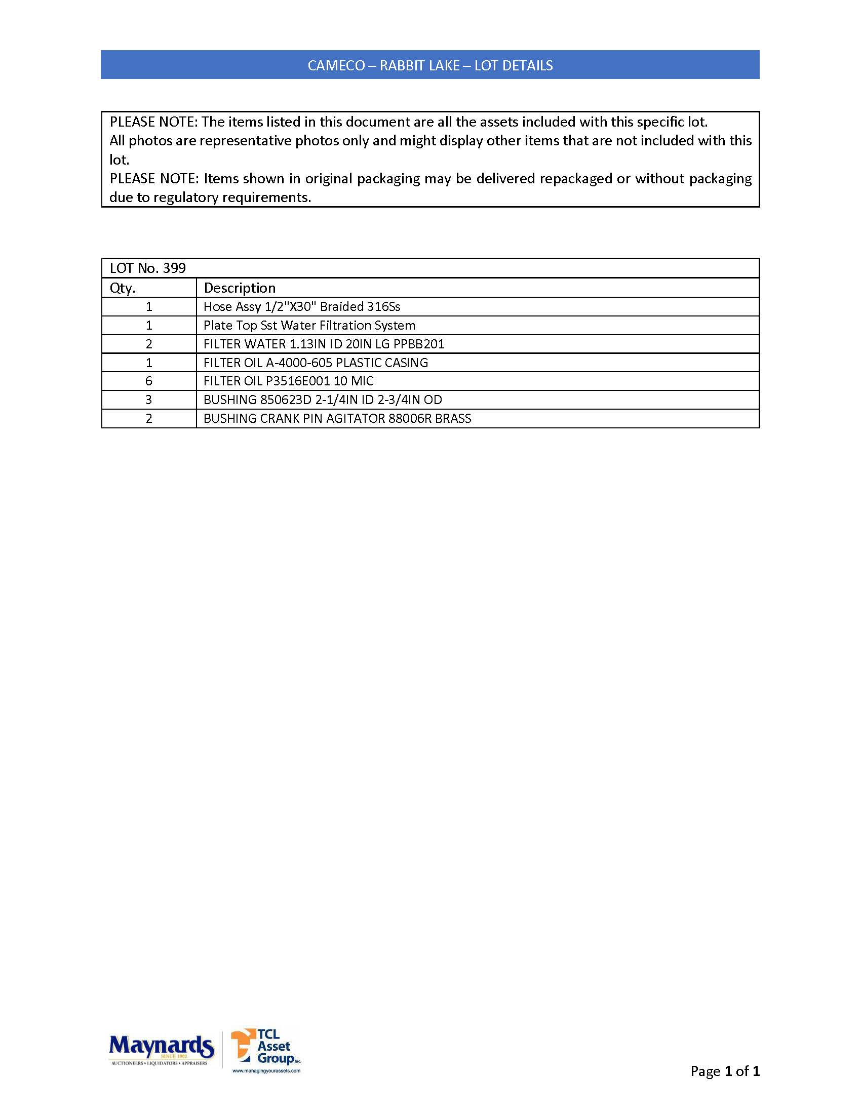 misc. filters and elements, etc. (please see attached for inclusive listing)
