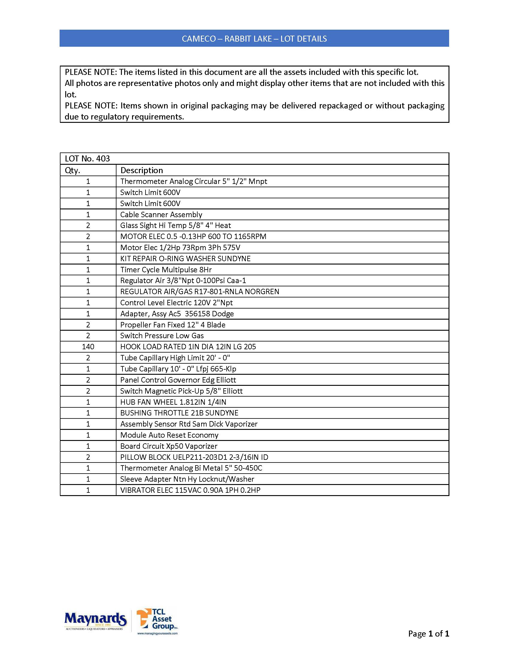 misc. instrumentation and controls, etc. (please see attached for inclusive listing)