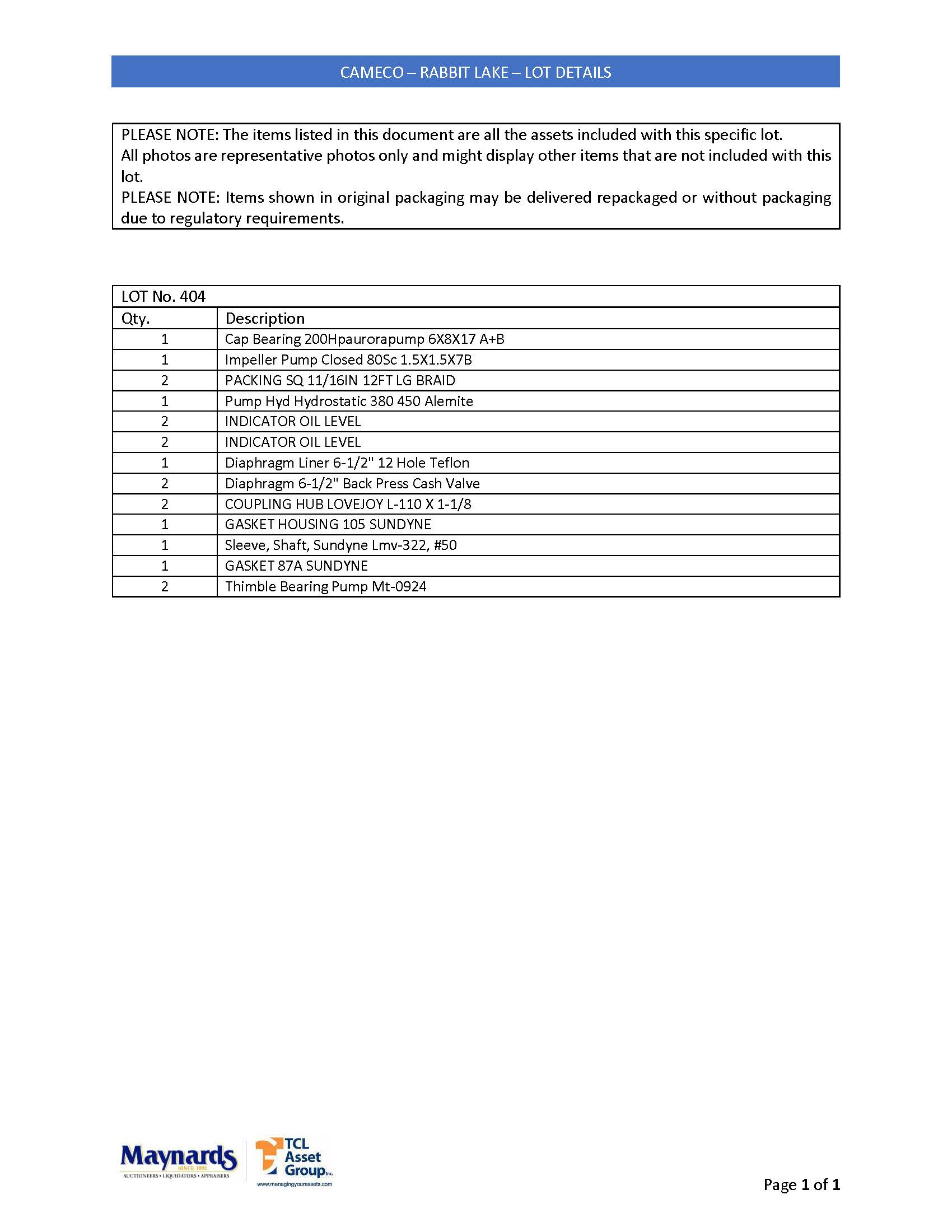 misc. pump spare parts, etc. (please see attached for inclusive listing)