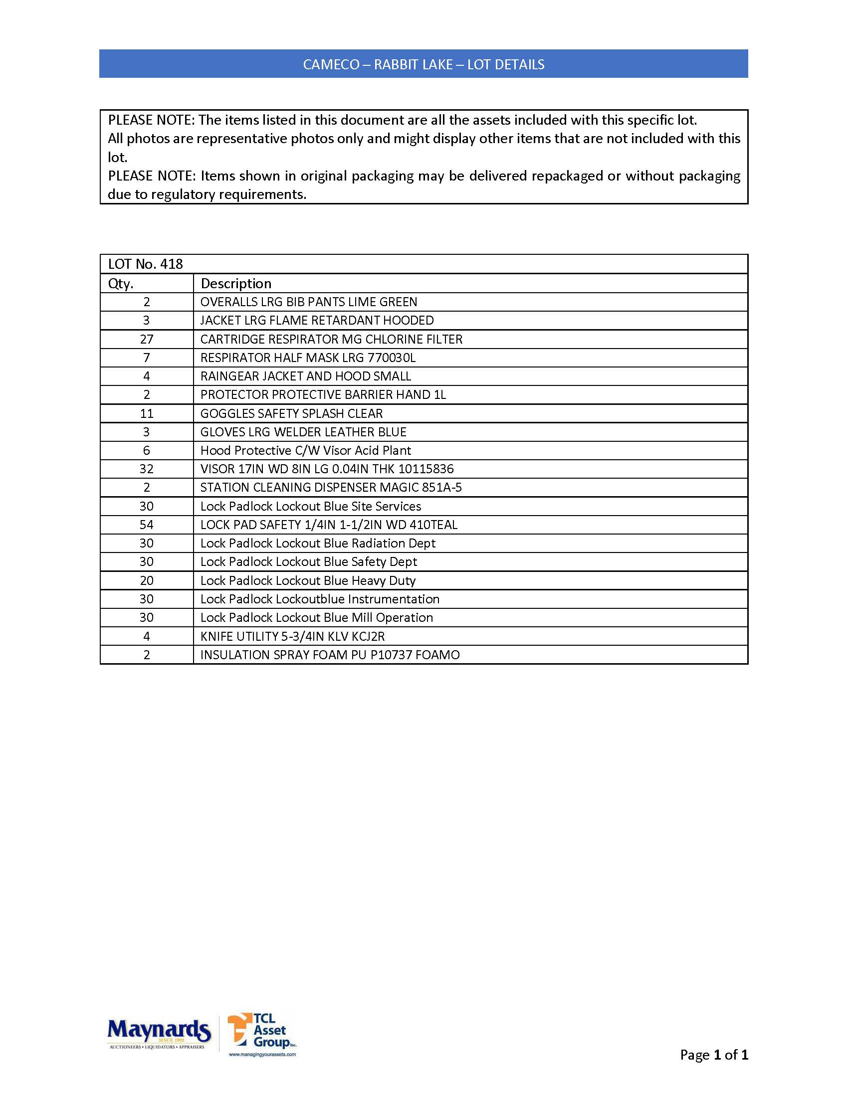 misc. shop and industrial supplies, etc. (please see attached for inclusive listing)