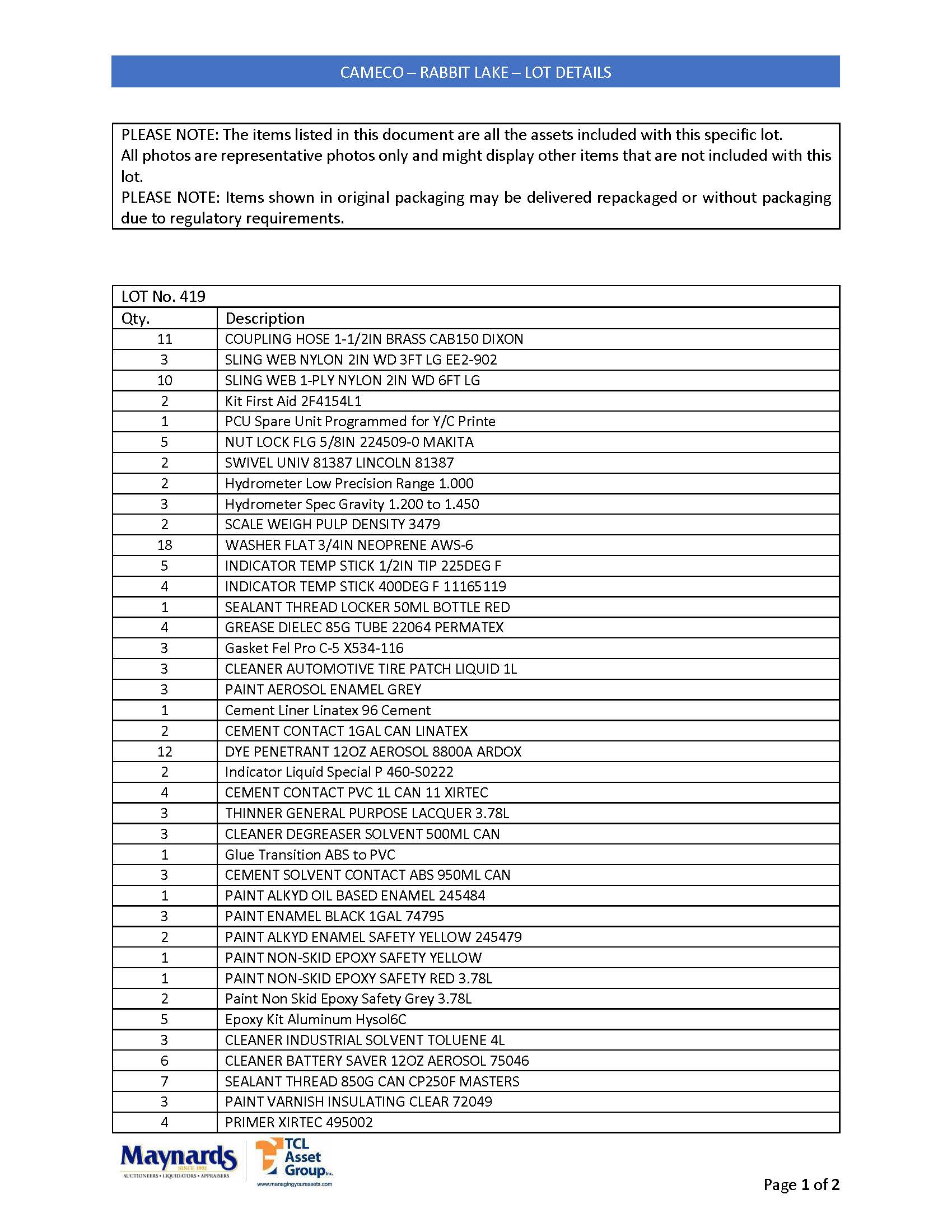 misc. shop and industrial supplies, etc. (please see attached for inclusive listing)