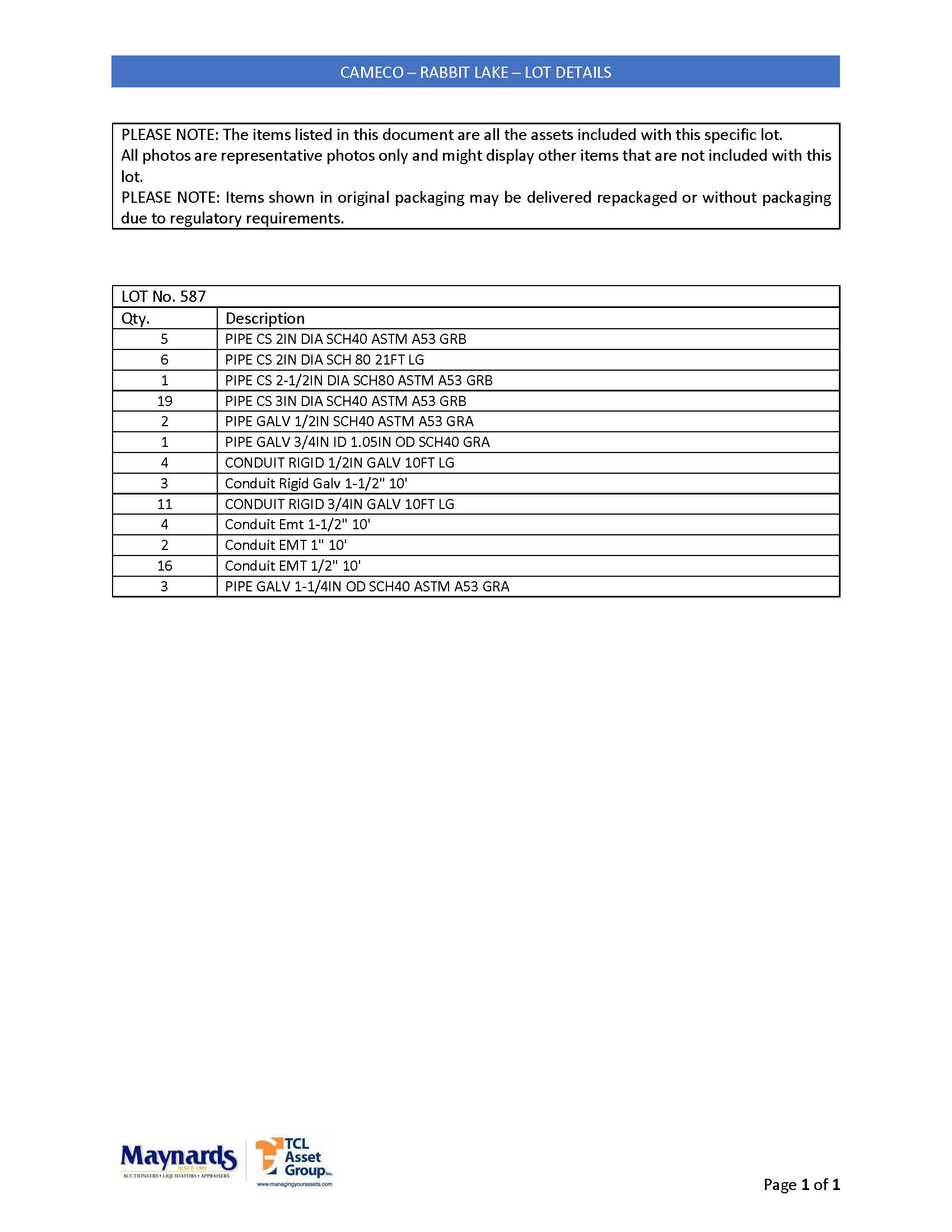 misc. carbon steel pipe, etc. (please see attached for inclusive listing)