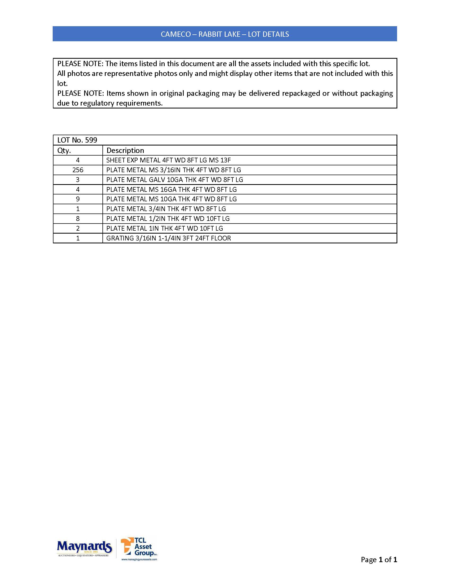 misc. plate metal, etc. (please see attached for inclusive listing)