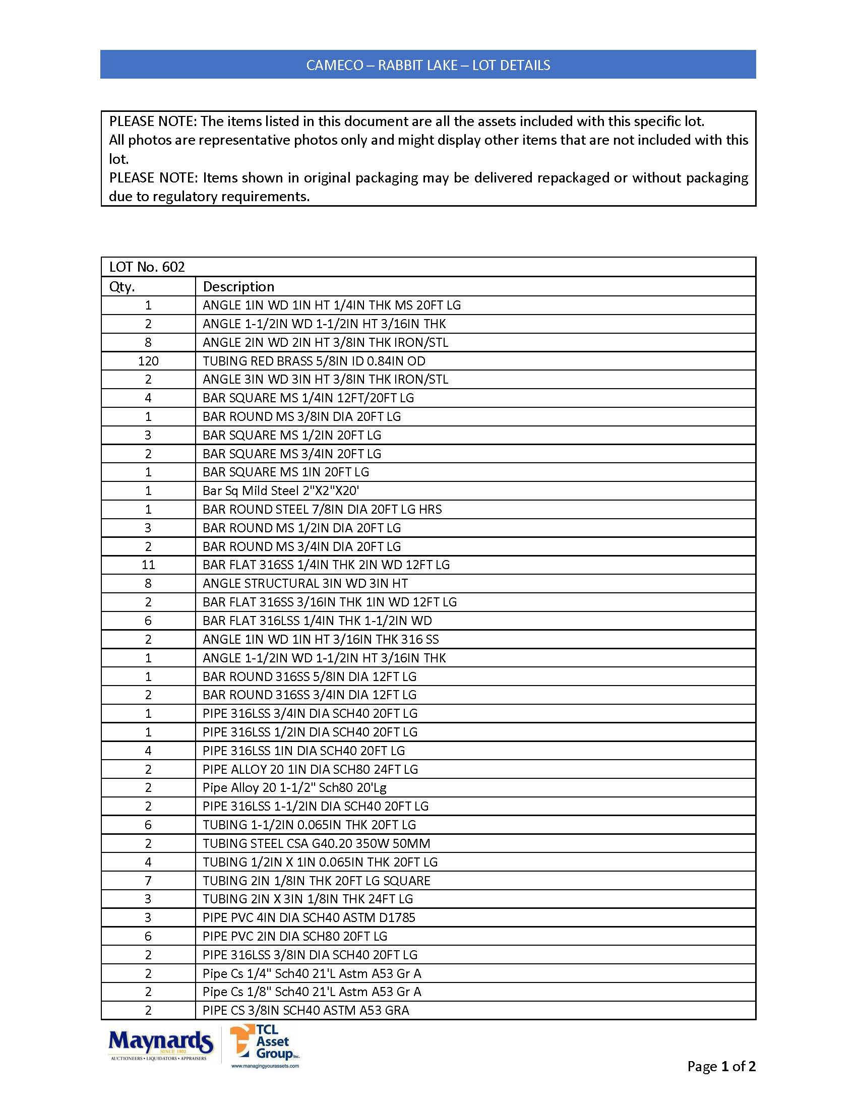 misc. bar stock and pipe, etc. (please see attached for inclusive listing)