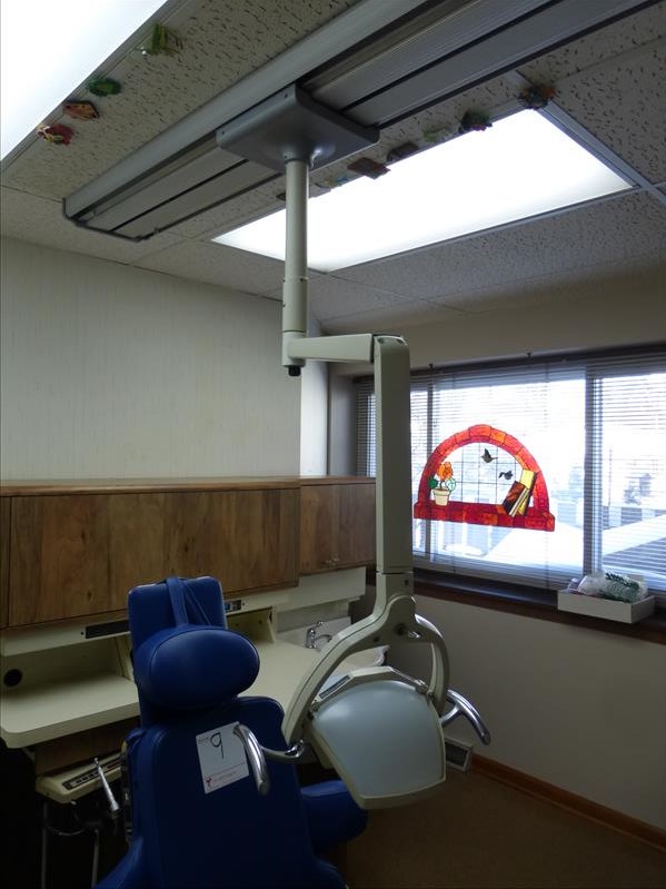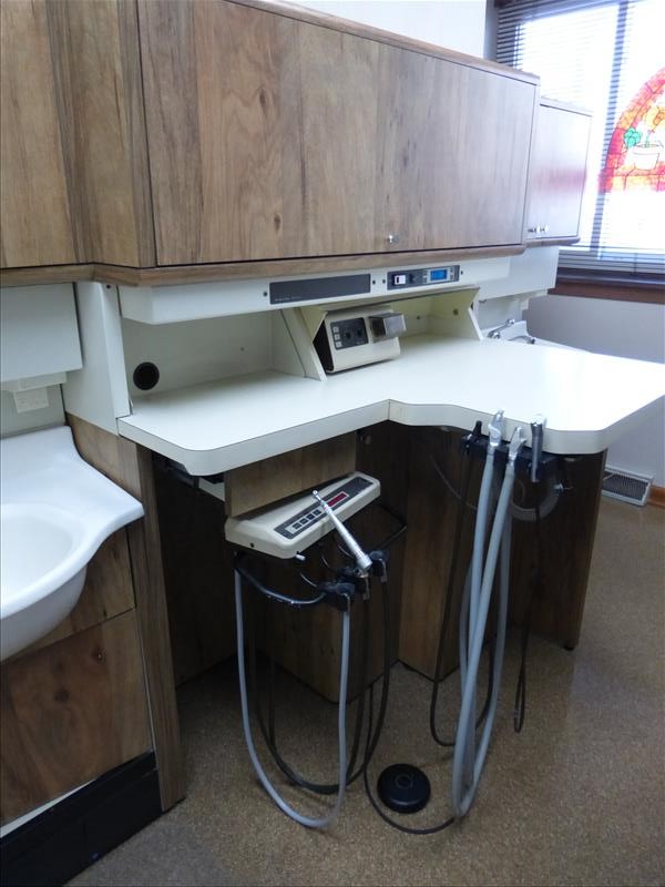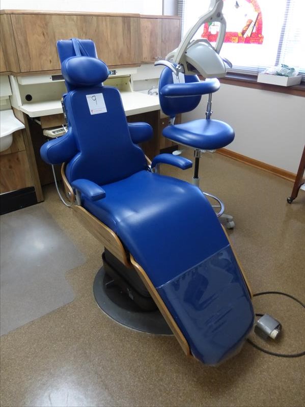 Dental chair with light w/ \"The Spirit System\" central console and matching stool. [Winner will be determined based on sum of bids on lots 1A to 73 vs bid on bulk lot 1.] (subject to confirmation)