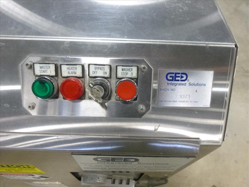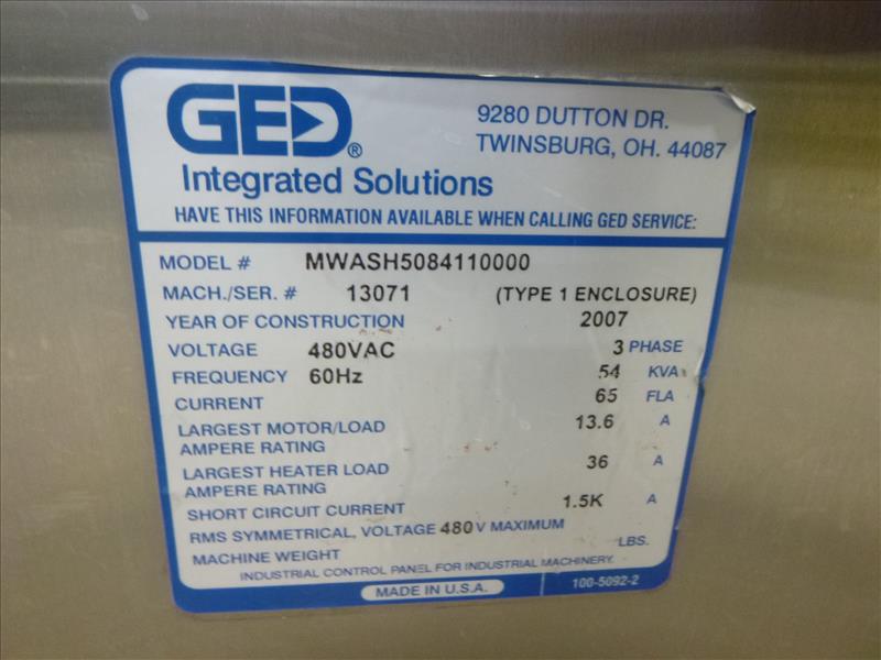 GED Integrated Solutions stainless steel horizontal glass washing system, mod. MWASH5084110000, ser. no. 13071, 84in wide (2007)