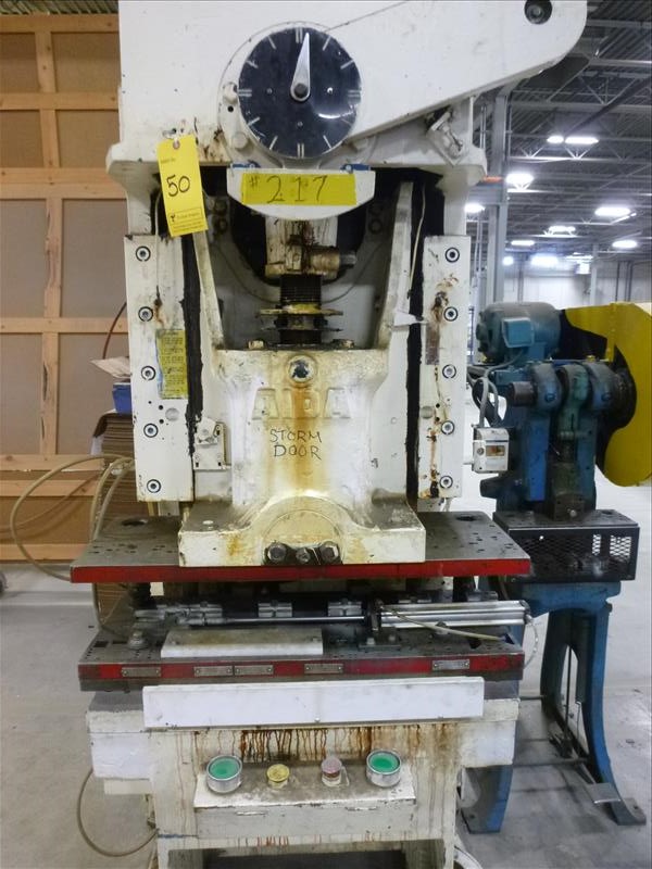 Aida gap-frame punch press, ref. # 72594, , approx. 50/55 ton cap., c/w die & palm button controls [Winner will be determined based on sum of bids on lots 47 to 76 vs bid on bulk lot 46] (subject to confirmation)