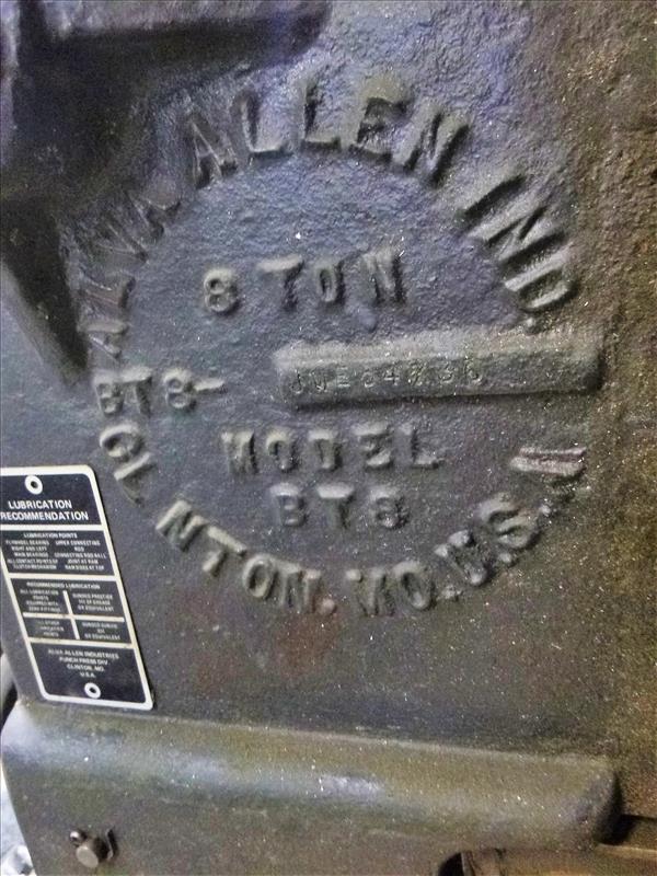 Alva Allen 8-ton punch press, mod. BT8, ser. no. JME5 c/w die [Winner will be determined based on sum of bids on lots 47 to 76 vs bid on bulk lot 46] (subject to confirmation)