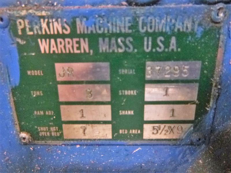 (2) Perkins 3-ton punch presses, mod. JR, ser. no. 37294 & 37295 c/w dies, foot-operated [Winner will be determined based on sum of bids on lots 47 to 76 vs bid on bulk lot 46] (subject to confirmation)