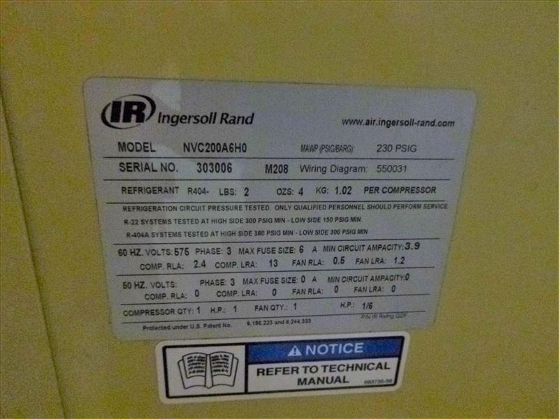 Ingersoll Rand refrigerated air drier, mod. NVC200A6H0, ser. no. 303006 M208 (ca. 2008)
