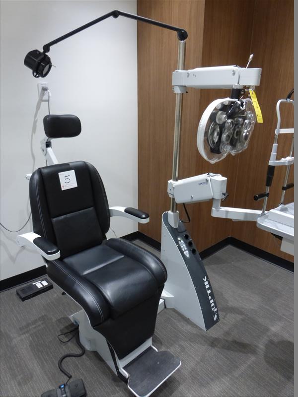 S40ptik combo chair/stand, model 2000 CD, s/n 204-2000-187 w/ slit lamp arm and refractor arm