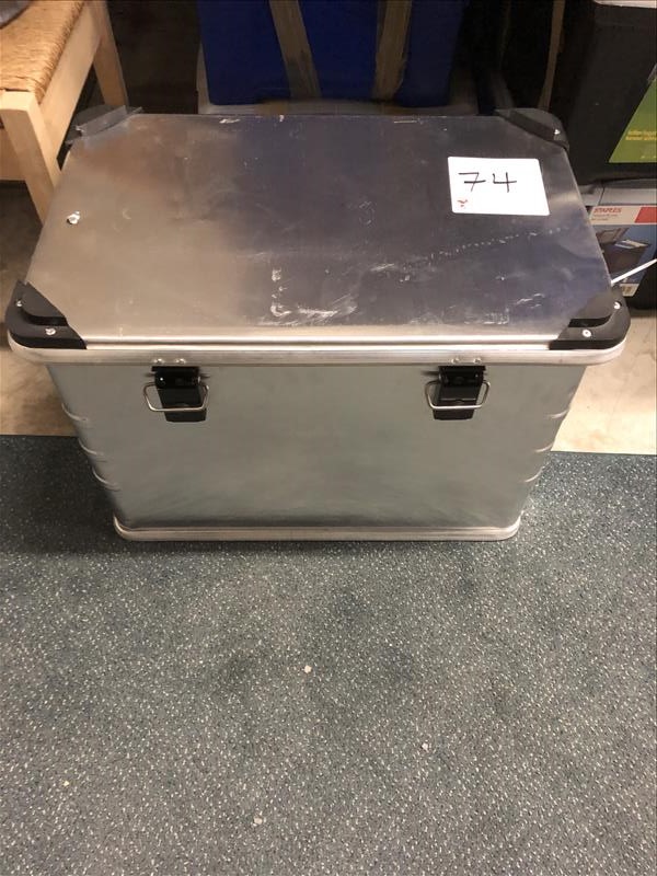 Stainless steel storage trunk, 23 in L by 15 inches W by 16.5 in H