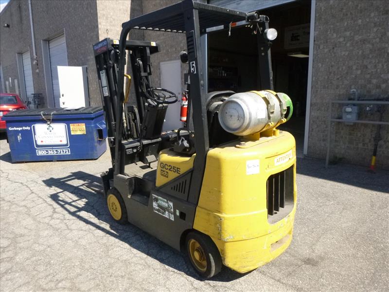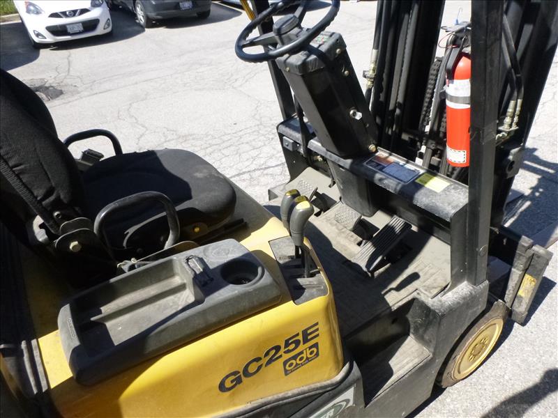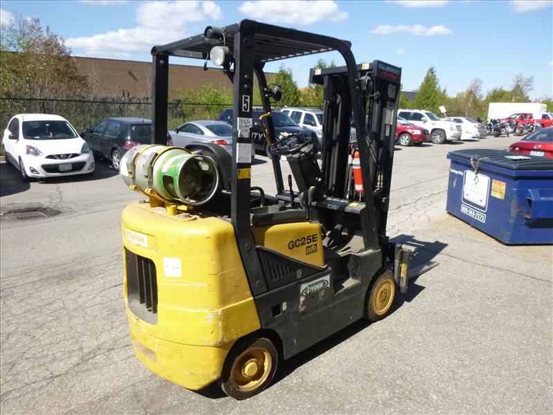 Daewoo Lift Truck, mod. GC25E-3, ser. no. CV-02826, LP, 4500 lbs. cap., 186 in./3-stage mast, side-shift, 3326 hrs. c/w (2) propane tanks