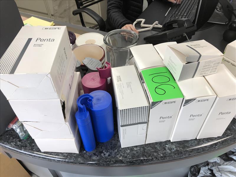 Espe PentaMatic cartridges, including Permadyne penta dunn -07787, 077861, Penta mixing tips -03162, and Dimension Penta L (with boxes, approx 10 boxes)