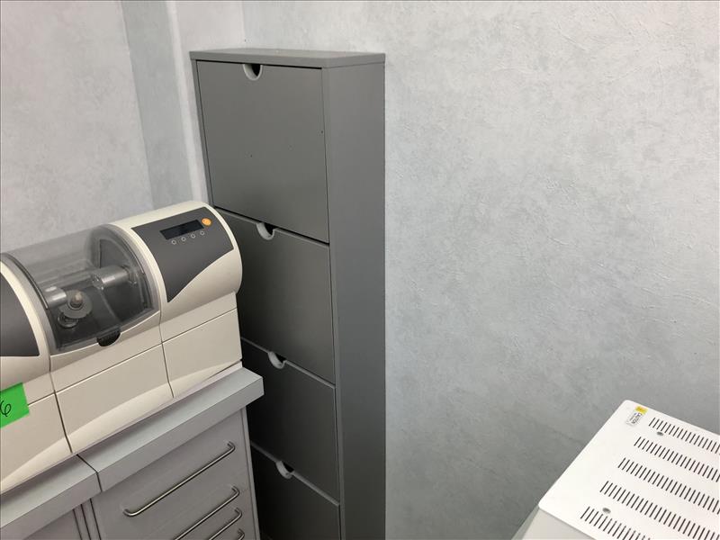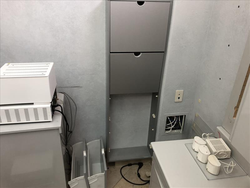 2 Sections, 5 drawers each, mobile counter, laminated finish, slide to open counter top plus (2) swivel chairs
