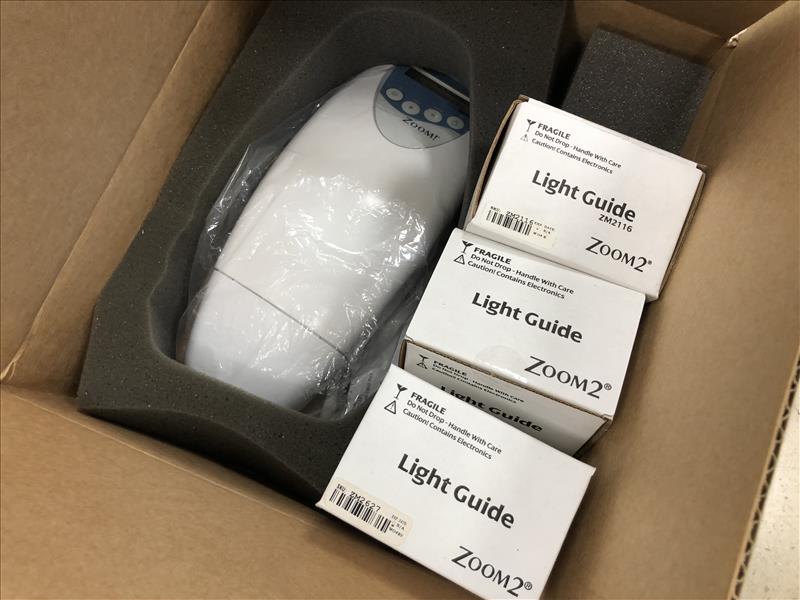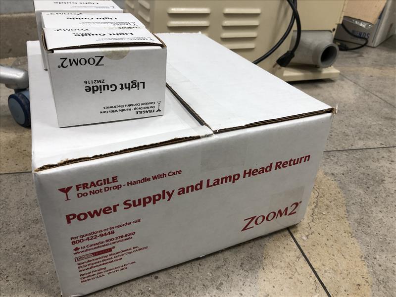 Zoom 2 dental whitening unit/parts including (1) power supply and lamp head return in box, (2) light guides with boxes