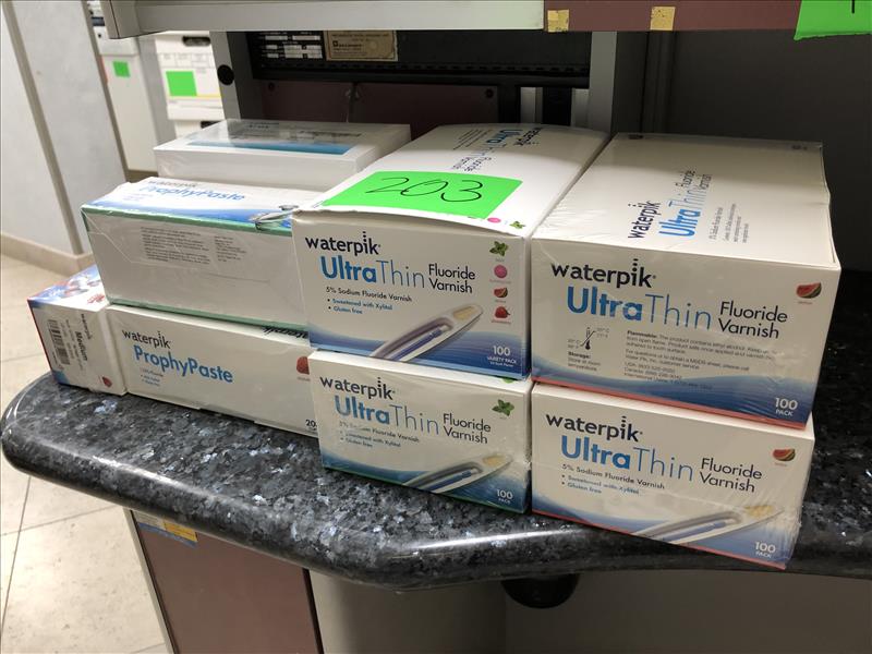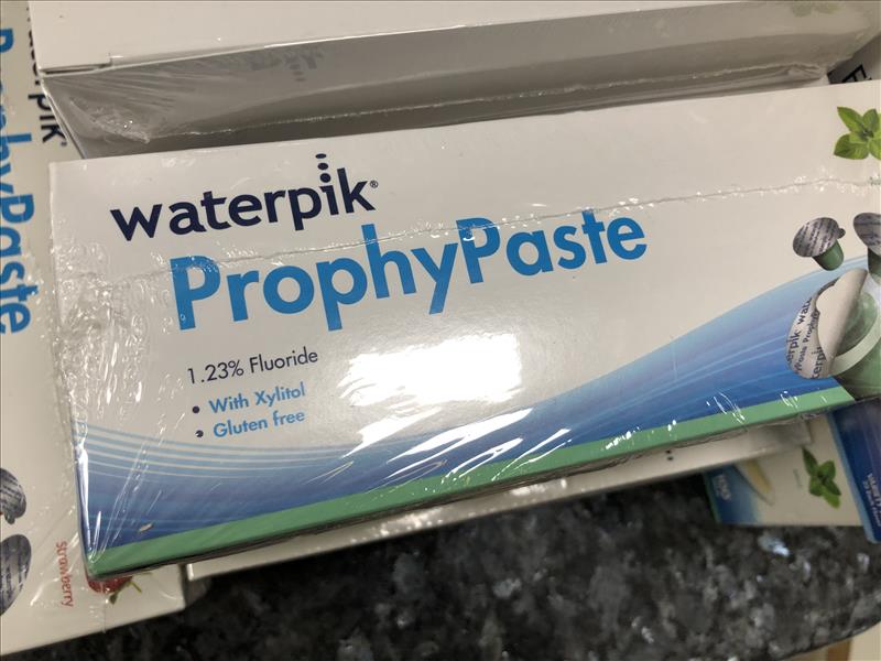 (9) boxes Waterpik ProphyPaste including Krex impression corrective paste, 1.23% fluoride, Ultra thin fluoride varnish