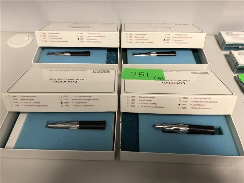 (4) Lares low speed handpiece component ref no. 10347 1:1 straight attachments with boxes